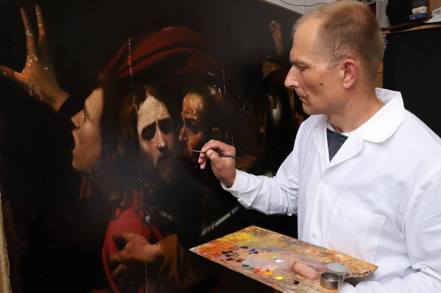 В пакете со скотчем и мусором: как украинские реставраторы вытащили с того света одесского КараваджоУкраденная из Музея западного и восточного искусства картина Микеланджело Меризи да Караваджо «Поцелуй Иуды, или Взятие Христа под стражу» после криминальных приключений и долгих лет судебной тягомотины находится на выставке в Национальном заповеднике «София Киевская». Далее полотно ждут в Литве и в Италии, до завершения войны его в Одессу не привезут. Но прибыли специалисты Национального научно-исследовательского реставрационного центра Украины, которые работали над восстановлением картины вместе с международными партнерами, в частности, ЮНЕСКО. Художественная общественность города смогла пообщаться с волшебниками, возвратившими к жизни, казалось бы, безнадежно утраченный шедевр. Воры варварским способом вырезали холст, оставив обрезки в брошенной раме. Активная фаза реставрации стартовала в 2018 году и длилась несколько лет. Ее завершили в августе 2021 года наканунн 450-летия художника. «Спасибо за то, что вы дали картине вторую жизнь, — говорит заместитель директора ОМЗВИ по научной работе Ирина Глебова. – У нее вообще очень сложная и драматична история. Она была приобретена Александром Петровичем Базилевским, известным коллекционером и дипломатом украинского происхождения, который с 1863 года жил в Париже. Но когда и где он ее приобрел, точно неизвестно. Первое документальное свидетельство насчет картины относится к 1868 году, когда Базилевский выставит ее на продажу на аукционе в Париже. Тогда полотно не продалось» По ее словам, в те времена имя Караваджо не было таким уж и знаменитым. Базилевский сосредоточился на предметах средневекового прикладного искусства. А картину вывез в Россию, и в 1870 году подарил ее великому князю Владимиру Александровичу Романову, который передал полотно в Музей императорской Академии искусств, ведь он был президентом этого учебного заведения. Также он был покровителем Одесского Общества изящных искусств, по инициативе которого в 1899 году в Одессе открылся городской Музей изящных искусств. И для пополнения его коллекции в 1902 году в Одессу из Петербурга были переданы 52 картины, среди которых была и картина Караваджо. Ирина Юрьевна напомнила также, что картину исследовали одесские музейщики нескольких поколений, начиная от 1950-х годов. Это Нелли Луцкевич, написавшая первый научный паспорт на картину Караваджо. Это Людмила Сауленко, посвятившая картине ряд статей. Это Виталий Абрамов, это научный консультант музея Наталья Чечикова, работающая в итальянских архивах, именно она обнаружила первое документальное свидетельство о картине в прошлом – парижский каталог 1868 года, в котором упомянута картина и ее владелец Базилевский. Генеральный директор Национального научно-исследовательского реставрационного центра Украины Светлана Стрельникова рассказала, что отобранное у похитителей полотно в 2010 году попало к реставраторам в ужасном состоянии. «Нам его передали в пластиковом мешке, заклеенном скотчем, — вспоминает Светлана Александровна. – Отдельно были собраны планки подрамника, отдельно мусор, который высыпался. Мы провели судебное исследование, искусствоведческое и технологическое. Хочу сказать, что долгое ожидание реставрации длилось до 2018 года, когда закон позволил нам взятьс