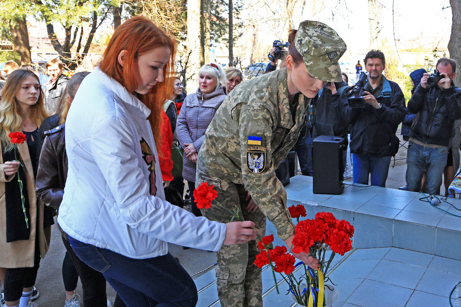 В память о погибших на востоке одесситах в школе № 106 высадили дубовую аллеюСегодня на небольшой площадке возле входа в одесскую общеобразовательную школу 106 было людно. Молодежь, ветераны, учащиеся, курсанты, воины АТО и ООС собрались на небольшую акцию, чтобы почтить память погибших одесситов и высадить аллею из 109 молоденьких деревьев. Именно столько одесситов погибло на востоке нашей страны в боях с оккупантами. Один из погибших — выпускник 106-й школы 2001 года Николай Руденко. Инициатива создания такой аллеи возникла у учеников 11 класса. Руководство школы и родительский комитет поддержали ребят. 109 саженцев молодых дубков школа получила в дар от коллег из Львова. На митинге преподаватели, ученики, ветераны и бойцы говорили о войне, о разведчике 59 бригады Николае Руденко и призывали молодое поколение всегда помнить тех, кто уже никогда не вернется. Память погибших почтили минутой молчания. Директор школы Юлия Корябина рассказала, что участниками АТО и ООС стали более десятка выпускников разных лет. Дети некоторых из них сейчас также учатся здесь. «Бывшие выпускники нашей школы – участники боевых действий часто заходят к нам в гости и рассказывают учащимся о войне, делятся опытом, стараются воспитывать молодое поколение. Идея высадить аллею возникла у старшеклассников и я, конечно, поддержала ее. Идеологическое воспитание молодежи сейчас оставляет желать лучшего, но вот такие мероприятия заставляют задуматься и расставить в жизни приоритеты», — отметила Юлия Корябина. Также директор пояснила, что молодые саженцы не останутся на месте высадки. Стадион школы нуждается в большой реконструкции, в ходе которой окрепшие дубы пересадят в другое место и сделают настоящую аллею. Фото Сергея Смоленцева СМЕРТЬ РОССИЙСКИМ ОККУПАНТАМ! Заметили ошибку? Выделяйте слова с ошибкой и нажимайте control-enter |