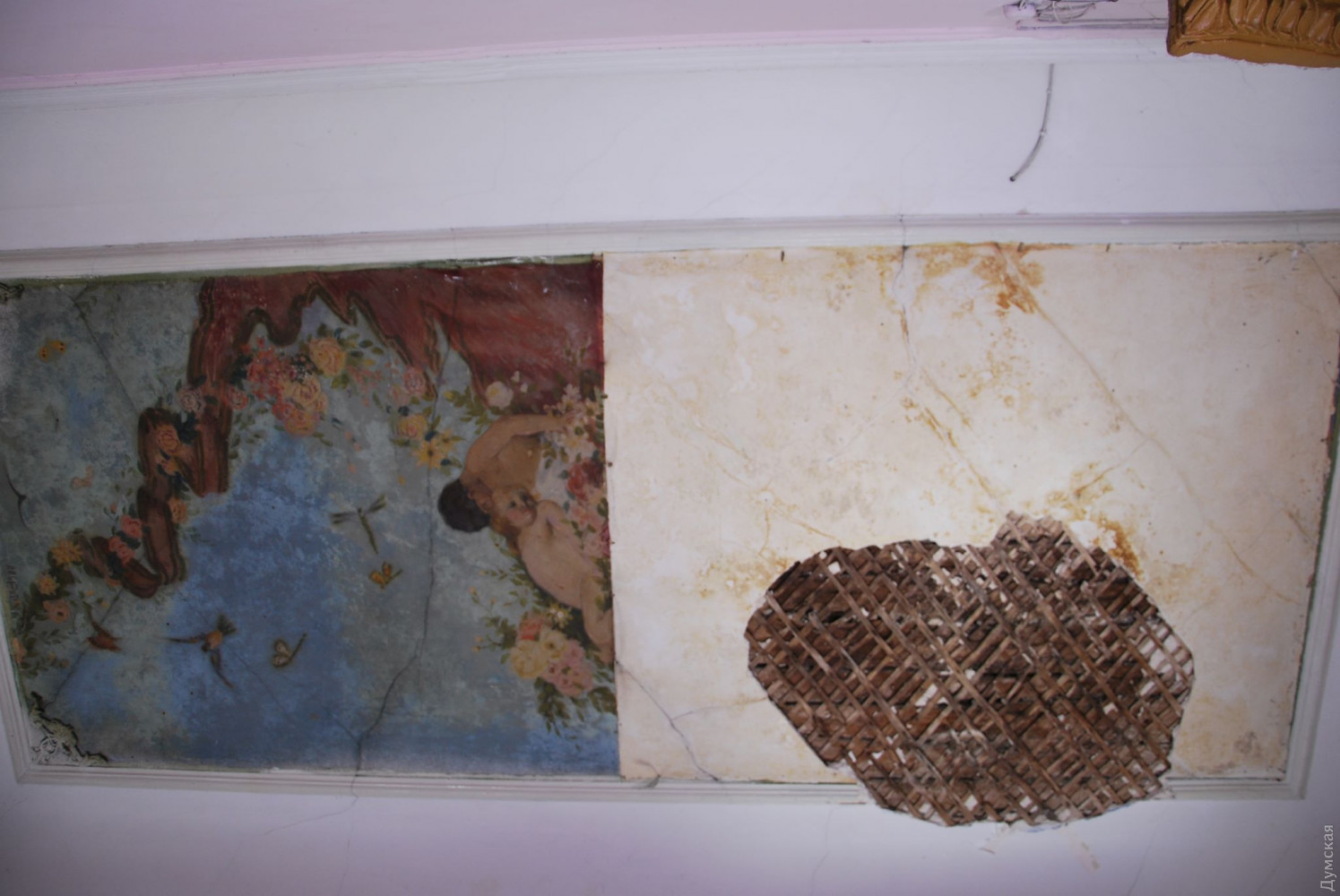 В памятнике архитектуры на Большой Арнаутской обрушилась часть потолка: пострадала старинная фрескаСтаринная фреска пострадала в результате обрушения части потолка парадной дома №47 по Большой Арнаутской. Об этом сообщил краевед Дмитрий Жданов. В здании располагается музей Николая Рериха. Его руководитель рассказал, что обрушение произошло несколько недель назад: во время сильных дождей протекла крыша. Крышу отремонтировали, а фреску сняли (она на холсте). Сейчас произведение искусства находится в музее. Сотрудники ищут спонсоров, чтобы отремонтировать потолок и вернуть фреску на место. «Бездействие коммунальщиков и саботаж памятникоохранной деятельности убивает Одессу! — заявил Жданов. — Требую от городских властей немедленно провести экспертизу всех памятников архитектуры Одессы». Большая Арнаутская, 45 - это памятник архитектуры местного значения. Был построен в 1901 году по проекту архитектора Адольфа Минкуса для братьев Лейбы и Григория Гольдштейнов. СМЕРТЬ РОСІЙСЬКИМ ОКУПАНТАМ! Помітили помилку? Виділяйте слова з помилкою та натискайте control-enter Новини по цій темі: 26 червня 2025: Сумнівний подарунок: пам'ятку архітектури на Приморському бульварі намагаються повернути одеській громаді 17 серпня 2025: Продають мерч у залі Костанді, ховають Стародавній Єгипет у підвалах і виставляються в Німеччині: як виживають одеські музеї (частина перша) 27 лютого 2025: Компанія з групи Коломойського готується до будівництва торгового центру біля Дерибасівської 28 листопада 2024: Будинок із «милицями»: на пам`ятку архітектури в одеському провулку Ройтбурда чекають протиаварійні роботи за 20 млн грн (фото) |