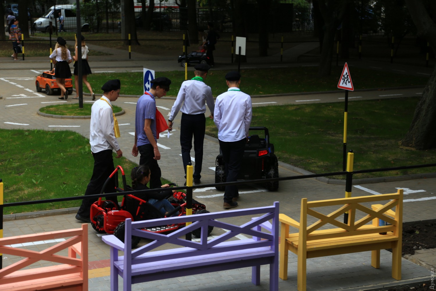 В арендованном компанией «Веста» парке Горького на Черемушках открыли детский автодром и огромную клумбу. Как передает корреспондент «Думской», автодром предназначен для езды на электромобильчиках. Он оборудован знаками дорожного движения, опасными поворотами и даже зоной кругового движения. Юные водители смогут изучить здесь все нюансы правил дорожного движения. Для школьных групп трасса будет бесплатной, пообещали в Малиновской райадминистрации. Клумба расположена в самом центре парка, возле фонтана. Она очень красивая, но ходить и лежать на ней нельзя. Фото — Сергей Смоленцев СМЕРТЬ РОСІЙСЬКИМ ОКУПАНТАМ! Помітили помилку? Виділяйте слова з помилкою та натискайте control-enter Новини по цій темі: 13 червня 2025: Суд відібрав Дюковський сад Одеси у фірми-«пустушки» і повернув місту: за боргами ніхто платити не буде 30 травня 2025: Корабель Землі: на одеській Трасі здоров'я з'явилася величезна дзеркальна куля від Михайла Реви (фото) |