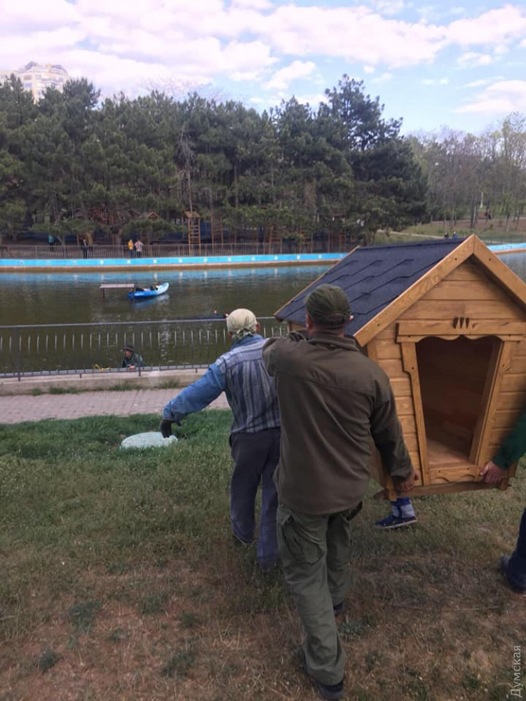 Сотрудники одесского КП «Сервисный центр» завершили монтаж первых трех домиков, в которых будет обитать водоплавающая живность парка Победы. Как сообщили «Думской» в департаменте городского хозяйства, три домика, которые отслужили пять лет и были разрушены февральским штормом, заменят на пять новых, более красивых и просторных. Три уже установили, в ближайшее время смонтируют и два других. В парковые пруды уже вернулись дикие утки, а вскоре из зоопарка сюда переведут и зимовавшую там пару лебедей. Что касается рыб и черепах, то они ведут бесконтрольную жизнь и коммунальщикам не подчиняются. СМЕРТЬ РОСІЙСЬКИМ ОКУПАНТАМ! Помітили помилку? Виділяйте слова з помилкою та натискайте control-enter Новини по цій темі: 13 червня 2025: Суд відібрав Дюковський сад Одеси у фірми-«пустушки» і повернув місту: за боргами ніхто платити не буде 30 травня 2025: Корабель Землі: на одеській Трасі здоров'я з'явилася величезна дзеркальна куля від Михайла Реви (фото) |