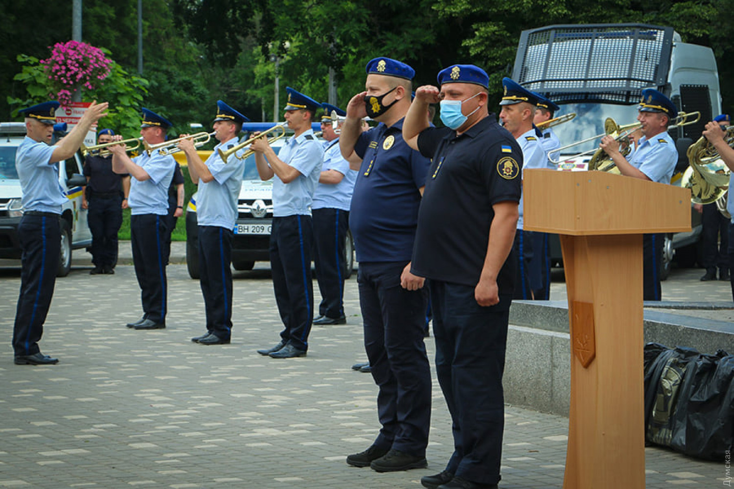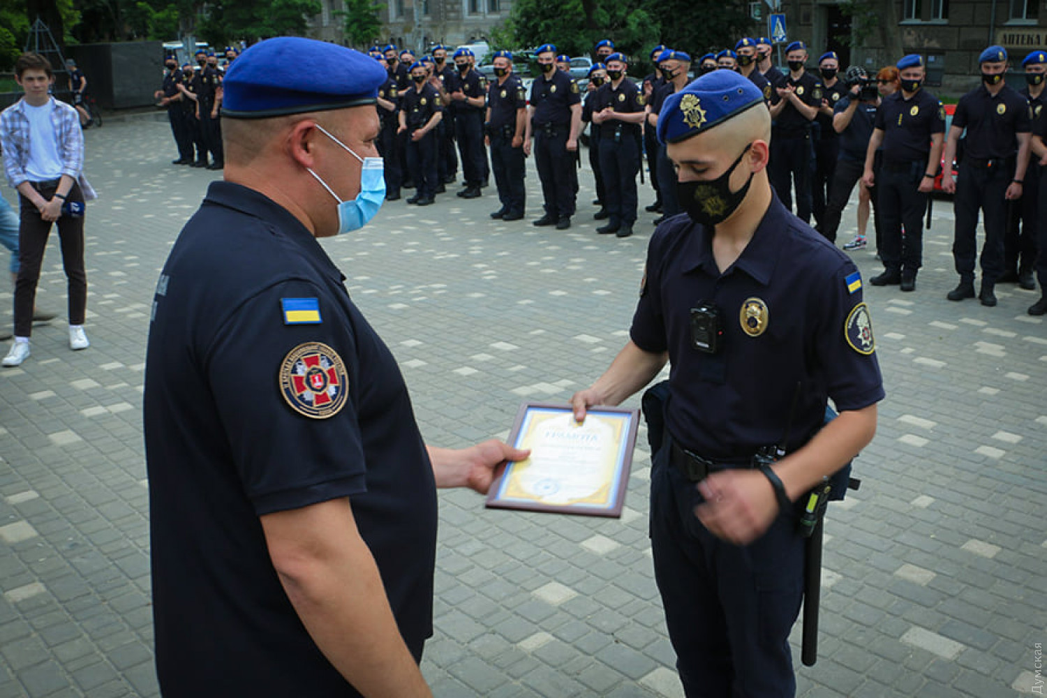 Военнослужащих поприветствовали командир одесской части НГУ №3012 Вячеслав Краснопольский и замначальника ГУНП в Одесской области Сергей Махотин.