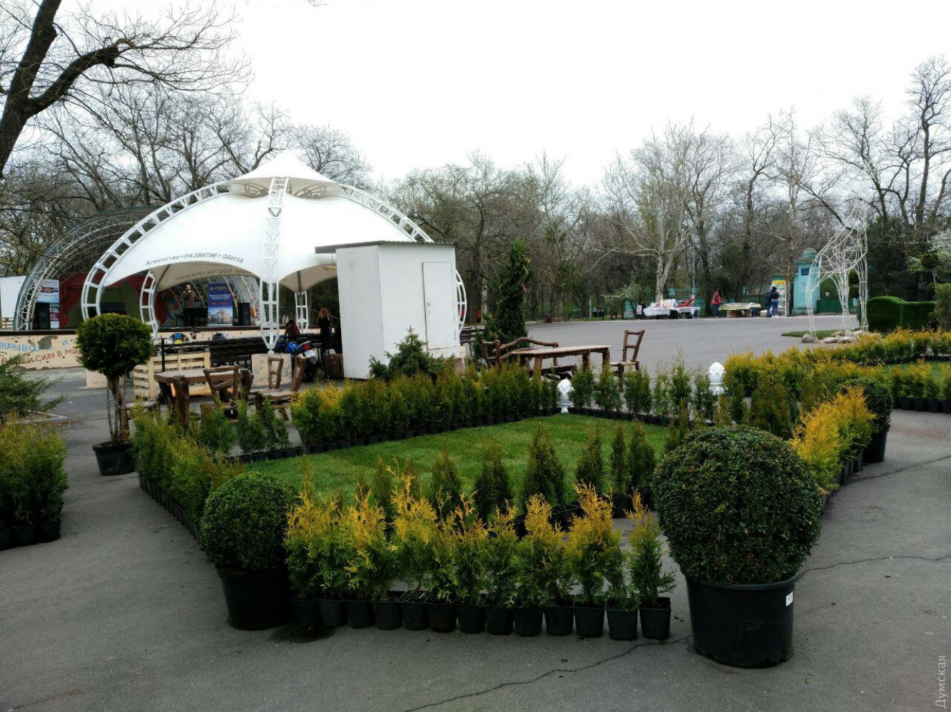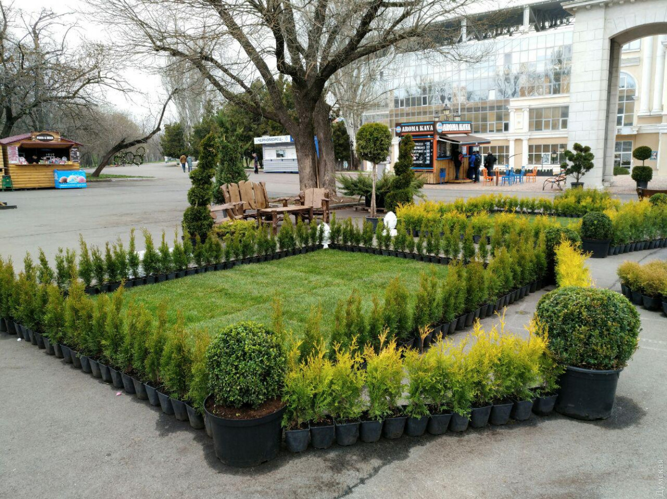В эти выходные в парке имени Шевченко проходит второй Фестиваль садово-паркового искусства и ландшафтного дизайна. Организаторы подготовили инсталляции из вечнозеленых растений и предметов садовой мебели, передает корреспондент «Думской». Фестиваль обустроили около сцены «Ракушка» и Александровской колонны. Там вырос мини-парк из газонов ровно очерченных вечно-зелеными кустарниками. Композиция выдержана в регулярном стиле, когда зеленые насаждения выстроены и выстрижены в правильных геометрических пропорциях. Между зелеными островками органично вписалась и деревянная уличная мебель. К слову, если в прошлом году зеленые инсталляции были представлены растениями из зарубежных питомников, то в этом организаторы поддержали украинского производителя. Все растения выращены на территории Житомирской области. По словам организаторов, этот фестиваль проходит в Одессе во второй раз и призван привлечь внимание горожан к тому, как можно обустраивать парки, и познакомить их с новинками в сфере ландшафтной архитектуры. «Наша основная миссия – популяризация ландшафтного искусства в Украине. Мы просто хотим, чтобы люди знакомились с разными стилями, узнавали больше и делали красоту на своих участках», — рассказывает организатор, ландшафтный архитектор Виктория Якименко. Помимо демонстрации новинок в сфере озеленения территорий, в рамках фестиваля проходят лекции и мастер-классы. А специально для любителей селфи организаторы оформили фотозоны – одну в стиле сериала «Игра престолов» с двумя массивными дубовыми креслами в виде трона и вторую в эко-стиле с диваном из зеленого газона. Фестиваль будет открыт до воскресенья включительно. Автор — Надежда Маркевич СМЕРТЬ РОСІЙСЬКИМ ОКУПАНТАМ! Помітили помилку? Виділяйте слова з помилкою та натискайте control-enter |