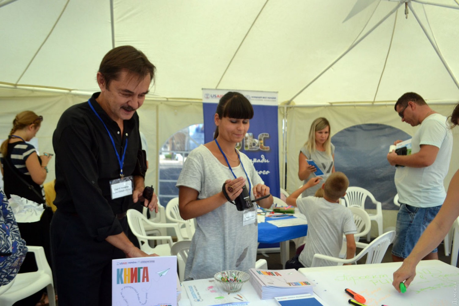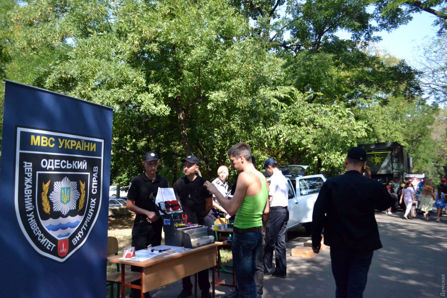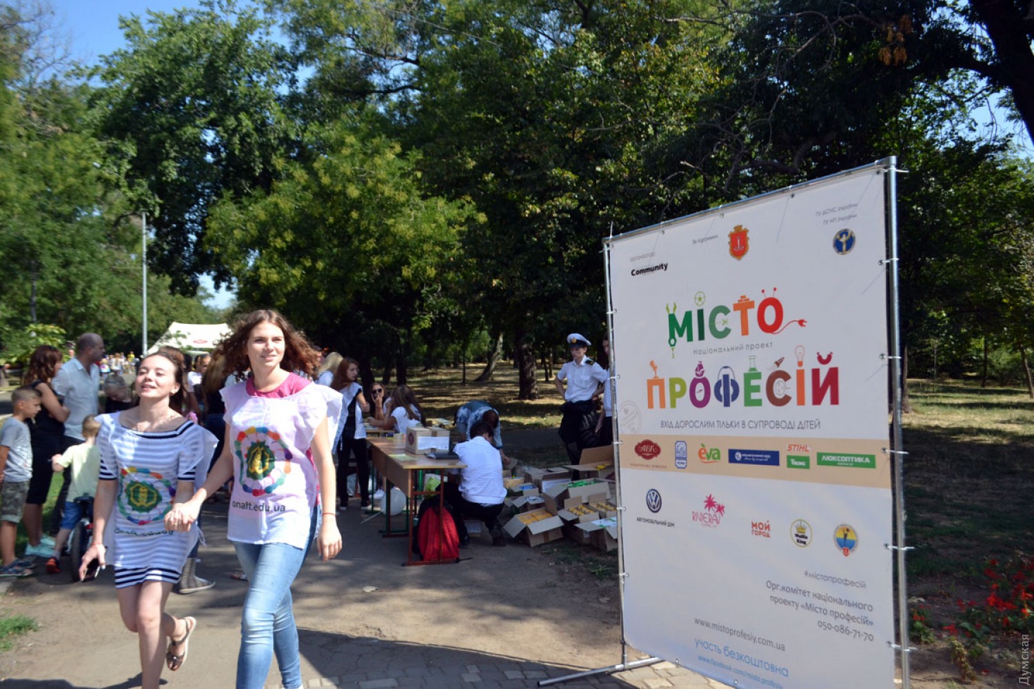 В парке Шевченко одесситы знакомятся с работой USAID, патрульной полиции, спасателей и криминалистовВ одесском парке Шевченко по случаю Дня города свои презентации проводят различные правоохранительные органы, экстренные службы и общественные организации. В частности, как передает корреспондент «Думской», возле памятника Шевченко о своих профессиях рассказывают сотрудники Главного управления ГСЧС Украины в Одесской области и патрульной полиции. Спасатели выставили свою технику, разложили спецоборудование и показывают детям, как работает металлоискатель. Патрульная полиция ограничилась представлением служебного автомобиля, но при этом собрала самую большую очередь из ребят, желающих посидеть за рулем полицейского «Приуса» и передать привет родителям через громкоговоритель. Кроме того, на выставке профессий присутствует экспертная служба при ГУНП в Одесской области и Национальная гвардия. Нацгвардейцы пригнали в парк передвижной клуб с экраном, выполненный на базе грузовика МАЗ, и транслируют с его помощью агитационные ролики. Далее по центральной аллее, возле стадиона «Черноморец», развернулся палаточный городок. Это - информационная ярмарка, на которой представители USAID рассказывают о своей деятельности, дают консультации по энергоэффективности, разработке проектов по улучшению городской инфраструктуры, возможностях участия в законотворческом процессе, реформе децентрализации и другим вопросам. Кроме того, там проводят различные мастер-классы, игры для детей и раздают конфеты. Фото — Андрей Колисниченко СМЕРТЬ РОСІЙСЬКИМ ОКУПАНТАМ! Помітили помилку? Виділяйте слова з помилкою та натискайте control-enter |