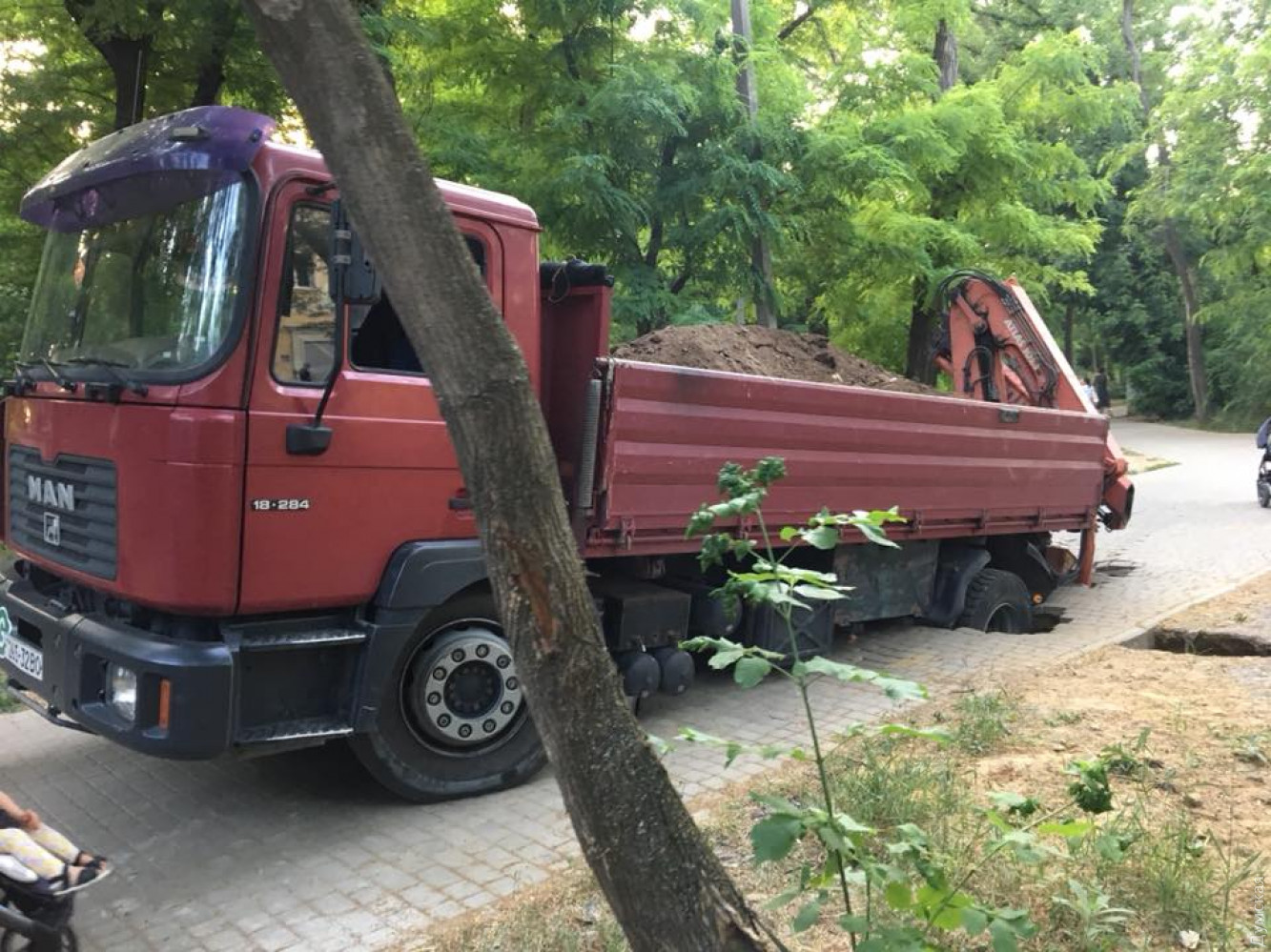 Очередной провал образовался сегодня в самом центре Одессы — в парке Шевченко. Как сообщили «Думской» очевидцы, примерно в 20:00 там провалился под плитку грузовик.