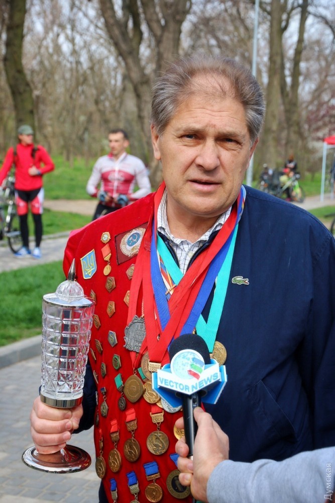 Испытать свои силы в пешем марафоне уже в третий раз решил экс-председатель областного совета Михаил Шмушкович. А на велосипеде трассу проходит секретарь горсовета Алексей Потапский.