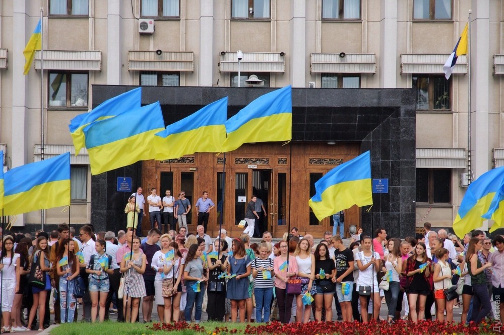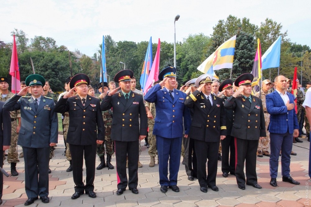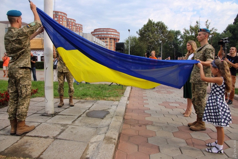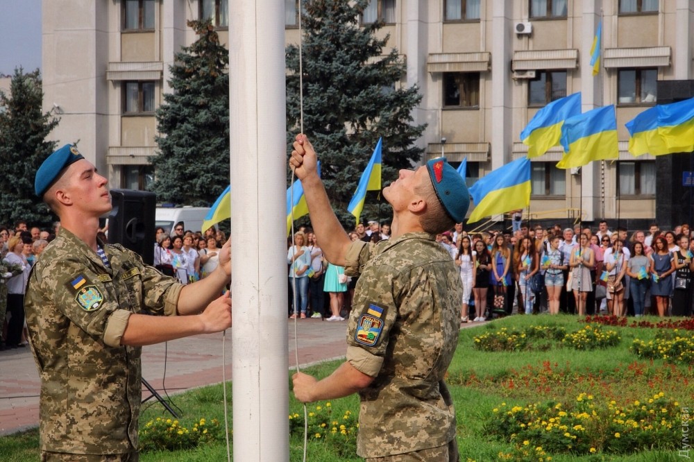 В подъеме государственного флага у одесской ОГА участвовали школьники со всей страныУкраина отмечает День государственного флага. Сегодня утром возле здания Одесской областной госадминистрации прошло торжественное поднятие этого национального символа. Как передает корреспондент «Думской», в мероприятии приняли участие представители областной власти, Вооруженных сил, а также участники военно-патриотической игры «Джура» — школьники со всей страны. Губернатора Михаила Саакашвили не было, вместо него торжественное построение принимала заместитель главы ОГА Соломия Бобровская. Фото — Александр Гиманов СМЕРТЬ РОСІЙСЬКИМ ОКУПАНТАМ! Помітили помилку? Виділяйте слова з помилкою та натискайте control-enter |