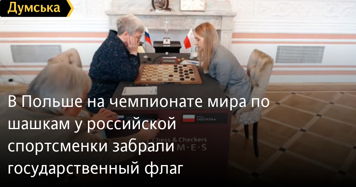 В Польше на чемпионате мира по шашкам у российской спортсменки забрали государственный флагШестикратная чемпионка мира по шашкам, россиянка Тамара Тансыккужина во время игры в рамках Всемирного чемпионата по шашкам среди женщин в Варшаве лишилась стоящего рядом с ней на столе государственного флага. Как объяснил бывший президент Европейской федерации шашек Яцек Павлицки от имени организаторов матча, флаг РФ убрали по распоряжению президента Всемирного антидопингового агентства (WADA) Витольда Баньки. По решению WADA, из-за допущенных Россией нарушений, спортсменам из РФ нельзя выступать под флагом страны на международных стартах, таких как чемпионаты мира или Олимпийские игры, до 16 декабря 2022 года. Под запрет также попали гимн и герб России. Отметим, инцидент с флажком стал темой бурных обсуждений в прямом эфире пропагандистского российского телевиденья. Действия поляков назвали «подловатыми», напомнили россиянам, что «Польша нам давно не друг», а затем порекомендовали Тансыккужиной при следующем таком случае бить стулом или игровой доской оппонентов по голове. СМЕРТЬ РОССИЙСКИМ ОККУПАНТАМ! Заметили ошибку? Выделяйте слова с ошибкой и нажимайте control-enter |