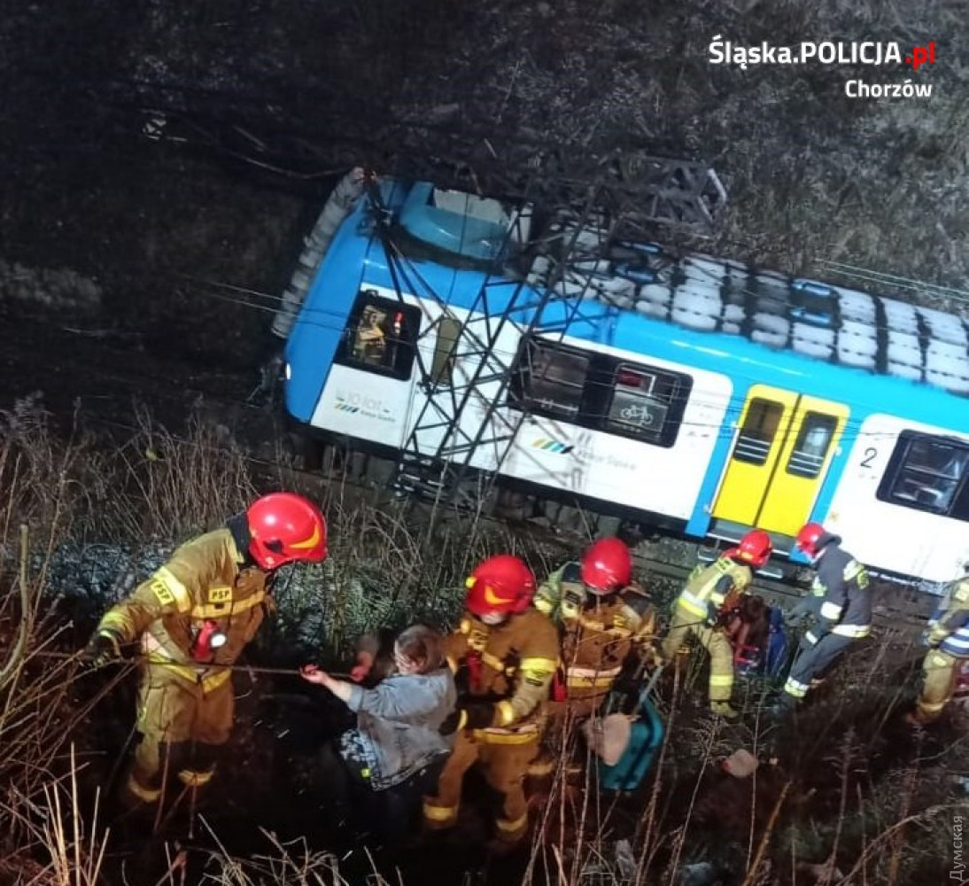 В польском Хожуве поезд компании «Kolejeląskie» на ходу врезался в электроопору, которая упала из-за оборванных проводов контактной сети. Об этом сообщило издание «Raport Kolejowy», показав фото с места происшествия. Уточняется, что провода накануне украли, была повреждена тяговая сеть. В результате опоры перестали питать железнодорожную тягу. Четыре столба рухнули на пути, в один из них въехал локомотив. Поезд остановился в районе улицы Познаньской и дальше следовать не мог. Отмечается, что никто из пассажиров не пострадал во время ЧП, но пришлось эвакуировать около 20 человек. Людям помогали выбраться полицейские и спасатели, так как в той местности крутой склон и сложно подняться наверх. В то же время спецслужбы следили, чтобы другие поезда не мешали эвакуации — их направляли по кольцевому маршруту через Гливице. Пассажиров доставили на автобусе на ближайшую железнодорожную станцию, где они смогли пересесть на другой поезд. В свою очередь, оператор железнодорожных перевозок заявил, что кражи, подобные этой, случаются довольно часто. Иногда они приводят к трагическим последствиям, к счастью, в этот раз все обошлось. СМЕРТЬ РОССИЙСКИМ ОККУПАНТАМ! Заметили ошибку? Выделяйте слова с ошибкой и нажимайте control-enter Новости по этой теме: 12 января 2022: Харьковские станции метро ожидает масштабная проверка: в вестибюле подземки на площади Конституции рухнул потолок (фото) 8 января 2022: В Одессе из офиса фирмы выкрали сейф с внушительной суммой денег, золотом и пистолетом 27 декабря 2021: В лесополосе под Киевом нашли тело главврача из Ровенской области: по подозрению в убийстве задержаны таксист с приятелем 23 декабря 2021: В Киеве задержали подозреваемых мошенников, которые обманывали на свиданиях мужчин ради денег |