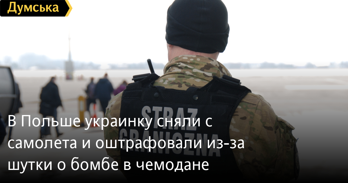 В Польше 40-летняя украинка не смогла улететь в Киев после того, как пошутила о бомбе в ее багаже. Об этом сообщает морской отдел польской пограничной службы. Уточняется, что инцидент произошел в городе Гданьск в аэропорту им. Леха Валенсы. Во время прохождения контроля пассажирку спросили, не везет ли она запрещенные предметы. Женщина в ответ решила пошутить, заявив, что у нее в сумке бомба. В аэропорту возникла паника, вызвали пиротехников, они проверили вещи пассажирки. В итоге оказалось, что ничего такого украинка не перевозит. Только после этого женщина призналась, что просто пошутила. В итоге неудачная шутка обошлась украинке в 500 злотых штрафа – в гривнах это около 3,6 тыс. А капитан самолета принял решение не пускать женщину на борт. СМЕРТЬ РОССИЙСКИМ ОККУПАНТАМ! Заметили ошибку? Выделяйте слова с ошибкой и нажимайте control-enter Новости по этой теме: 12 января 2022: Харьковские станции метро ожидает масштабная проверка: в вестибюле подземки на площади Конституции рухнул потолок (фото) 8 января 2022: В Одессе из офиса фирмы выкрали сейф с внушительной суммой денег, золотом и пистолетом 27 декабря 2021: В лесополосе под Киевом нашли тело главврача из Ровенской области: по подозрению в убийстве задержаны таксист с приятелем 23 декабря 2021: В Киеве задержали подозреваемых мошенников, которые обманывали на свиданиях мужчин ради денег |