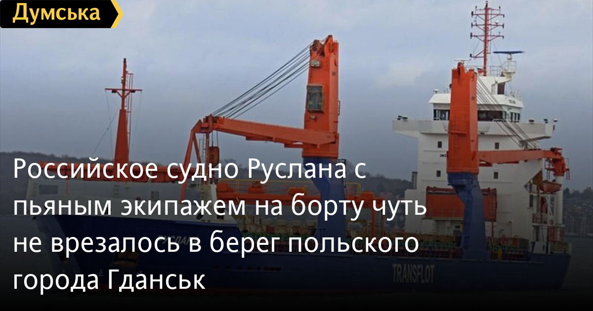 Российское судно «Руслана» с пьяным экипажем на борту чуть не врезалось в берег польского города ГданськПольские пограничники задержали российское судно «Руслана» у берегов Гданьска. Сухогруз плыл прямо в сторону пляжа острова Собешево в Гданском районе. Как сообщают польские СМИ, позже выяснилось, что капитан и двое моряков были пьяны. Судно решили проверить 4 декабря после подозрительных маневров. Сухогруз, двигаясь из порта Клайпеды в гданский Северный порт, отклонился от курса и пошел прямо на пляж. Судно двигалось со скорость не менее 11 узлов (около 20 км. в час) и не реагировало на предупреждения морской администрации. На расстоянии километра от пляжа, судно совершило крутой поворот. Польские пограничники решили проверить все ли в порядке на сухогрузе. В итоге, рассказывает спикер морской пограничной службы в Гданьске Анджей Юзвяк, выяснилось что экипаж судна пьян: у капитана в крови был почти один промилле алкоголя, а у двух офицеров – 1,5 промилле. «Я работаю уже 30 лет и ничего подобного не видел», — отмечает один из участников операции в интервью радиостанции RMF FM. Сейчас сухогруз находится на якорной стоянке порта Гданська. На его борту находятся инспектор Морского управления в Гдыне в сопровождении офицеров Кашубского дивизиона Пограничной службы. Владельцем и оператором судна «Руслана» является ООО «Трансфлот» из Санкт-Петербурга СМЕРТЬ РОССИЙСКИМ ОККУПАНТАМ! Заметили ошибку? Выделяйте слова с ошибкой и нажимайте control-enter |