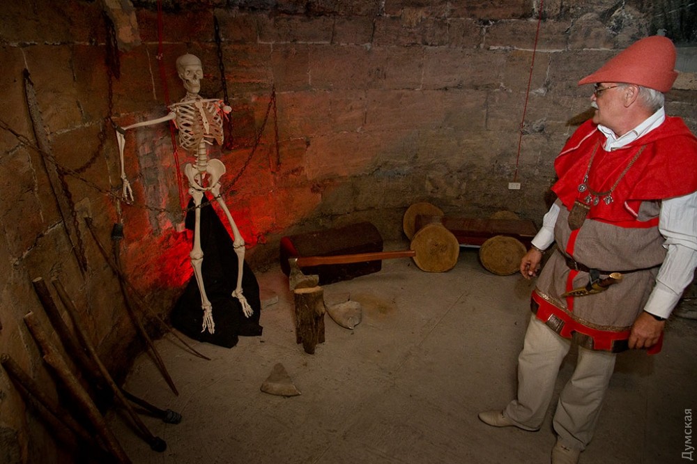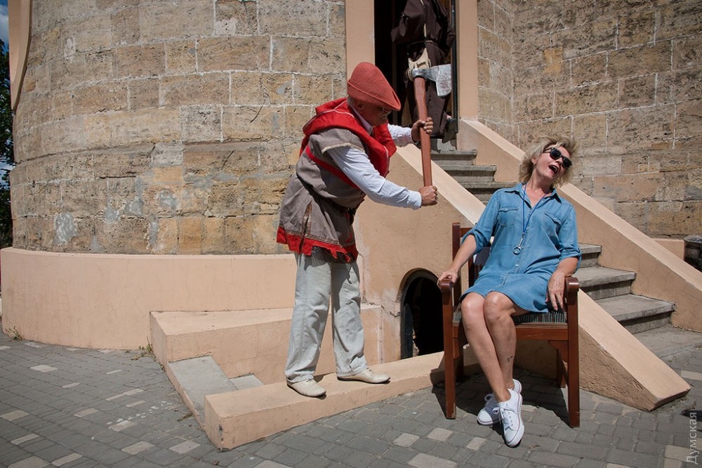 Пыточную фото-зону оборудовали в подвале и возле Пороховой башни одесского Карантина в рамках фестиваля средневековой культуры. Как передает корреспондент «Думской», любой желающий может испытать на себе действие «испанского сапога», раскаленной кочерги или посидеть на колючем стуле. Кроме того, можно сделать селфи с палачом и останками его жертвы.