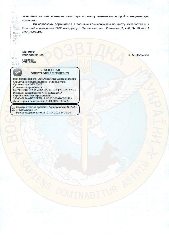 В самопровозглашенной «Приднестровской молдавской республике» объявили военные сборы для мужчин до 55 лет, которые продлятся 90 дней. Об этом сообщило Главное управление разведки Министерства обороны Украины. Главы местных администраций получили письмо от «Министерства обороны ПМР», где идет речь о проведении призыва граждан на «специальные сборы». Цель собрания – «обеспечение 100% укомплектованности личного состава Миротворческого контингента Приднестровской молдавской республики, а также обеспечение занятостью трудоспособного населения республики». Участникам гарантируется денежное обеспечение, проживание и питание. Неработающим гражданам пообещали от 2800 «рублей ПМР» (приблизительно 170 долларов). В ГУР добавили, что несмотря на то, что формально участие в сборах является добровольным, есть информация, что призыв будет носить принудительный характер. «Примечательно, что письмо датировано 21 апреля. То есть, до начала последних российских провокаций на территории «ПМР». Это напоминает события в так называемых лнр/днр накануне полномасштабного российского вторжения в Украину», — отметили в разведке. СМЕРТЬ РОСІЙСЬКИМ ОКУПАНТАМ! Помітили помилку? Виділяйте слова з помилкою та натискайте control-enter |