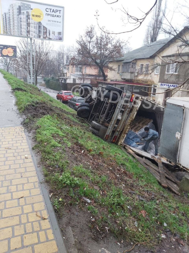 На пересечении Парковой и Грушевского у грузовика на ходу отсоединился прицеп с контейнером и опрокинулся в кювет. Как сообщают очевидцы, транспортное средство чуть не врезалось в троллейбусную остановку. ДТП обошлось без пострадавших. На месте работает патрульная полиция. Обстоятельства инцидента выясняются. Фото, видео — XYDESSA СМЕРТЬ РОСІЙСЬКИМ ОКУПАНТАМ! Помітили помилку? Виділяйте слова з помилкою та натискайте control-enter |