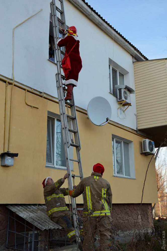 Маленьких жителей райцентра Николаевка Одесской области с Новым годом и Рождеством поздравил Дед Мороз-спасатель, который приехал к ним на пожарной машине. Как сообщили в Ивановском районном секторе ГУ ГСЧС в Одесской области, спасатели решили устроить сюрприз для маленького друга Андрюши, который очень любит пожарное дело и все, что с ним связано. Дед Мороз в красной каске приехал к дому мальчика на настоящей пожарной машине и поднялся по автолестнице к окну, чтобы вручить подарки и поздравить мальчика и его семью с праздниками. Также Дед Мороз вручил подарки детям сотрудников спасательной службы Ивановского района. СМЕРТЬ РОСІЙСЬКИМ ОКУПАНТАМ! Помітили помилку? Виділяйте слова з помилкою та натискайте control-enter |
