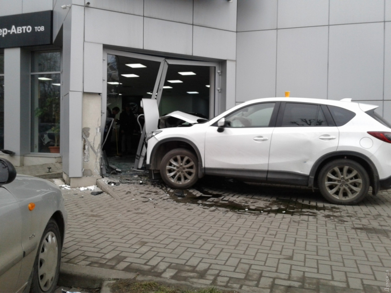 Столкновение автомобилей Mazda и «Ваз» произошло сегодня около 11:30 в районе ЖК «Альтаир» на Люстдорфской дороге. Как сообщили в патрульной полиции, в результате столкновения один из автомобилей въехал в помещение автосалона через входную дверь. Пострадавших нет. Зафиксированы повреждения двух новых автомобилей, припаркованных в автосалоне. Фото «Одесский паблик» СМЕРТЬ РОСІЙСЬКИМ ОКУПАНТАМ! Помітили помилку? Виділяйте слова з помилкою та натискайте control-enter |