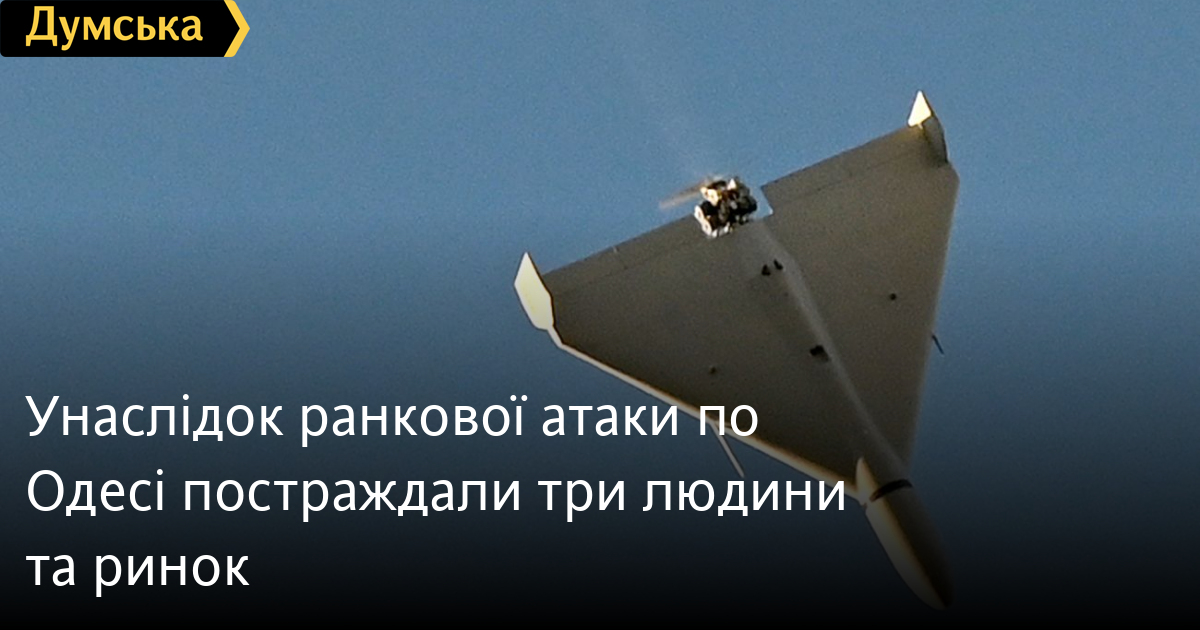 Унаслідок ранкової атаки по Одесі постраждали три людини та ринокТри людини дістали поранення внаслідок ранкової атаки безпілотників на Одесу. Як повідомив голова міської військової адміністрації Сергій Лисак, унаслідок ворожих ударів в одному з районів пошкоджено дах автосалону, вибито шибки в будівлі та понівечено машини, що перебували всередині. «Також пошкоджено один із ринків міста, там постраждали троє людей. Медики вже надають постраждалим усю необхідну допомогу», — уточнив він. В іншому районі від атаки постраждав приватний будинок і автомобіль. СМЕРТЬ РОСІЙСЬКИМ ОКУПАНТАМ! Помітили помилку? Виділяйте слова з помилкою та натискайте control-enter