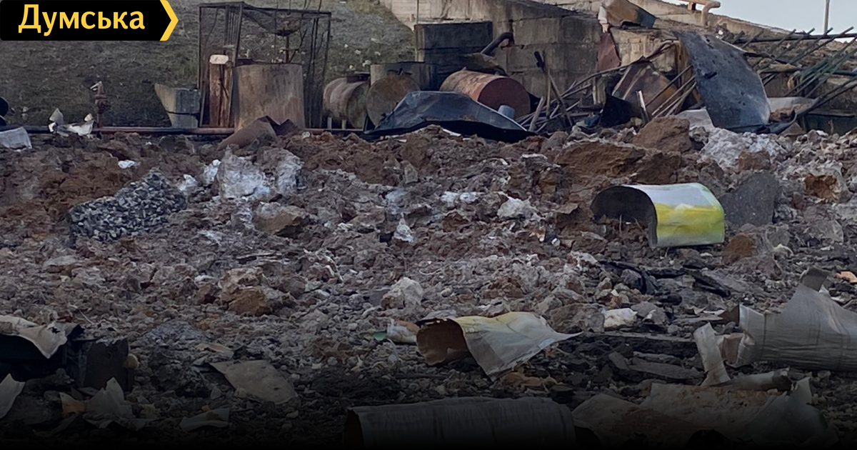 После попадания на территории предприятия образовалась воронка диаметром 12 и глубиной три метра. Разрушены промышленные объекты.