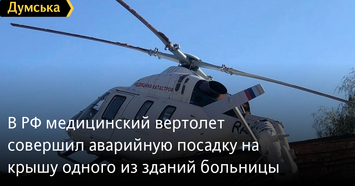 В РФ медицинский вертолет совершил аварийную посадку на крышу одного из зданий больницыВертолет «Ансат» всероссийского центра медицины катастроф совершил сегодня аварийную посадку в Ижевске. Скорее всего летчики пытались посадить неуправляемую машину в любом месте, поэтому совершили посадку на крышу одного из зданий Первой республиканской клинической больницы. Некоторые комментаторы в сети говорят, что это морг. Судя по повреждениям, скорость снижения была большой — при контакте с поверхностью надломилась хвостовая балка вертолета. На борту находились четыре человека, серьезную травму головы получил фельдшер. Российские СМИ сообщают, что вертолет санавиации доставлял пострадавшего из города Можга, не долетев до вертолетной площадки всего несколько десятков метров. СМЕРТЬ РОССИЙСКИМ ОККУПАНТАМ! Заметили ошибку? Выделяйте слова с ошибкой и нажимайте control-enter |