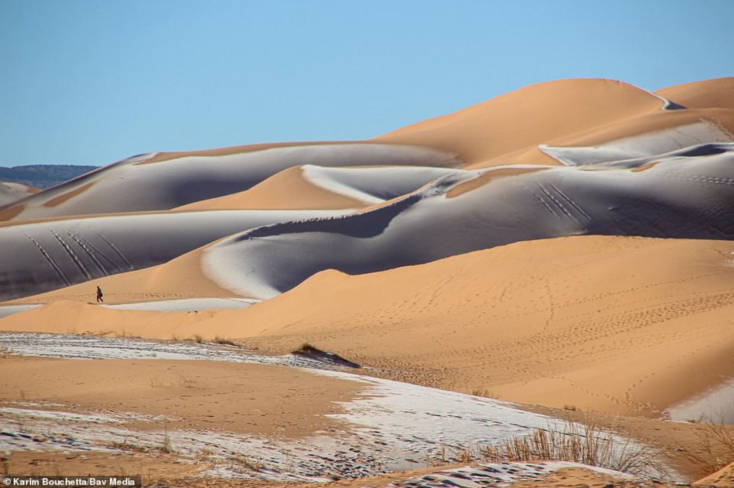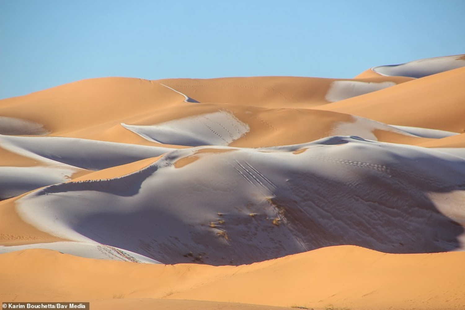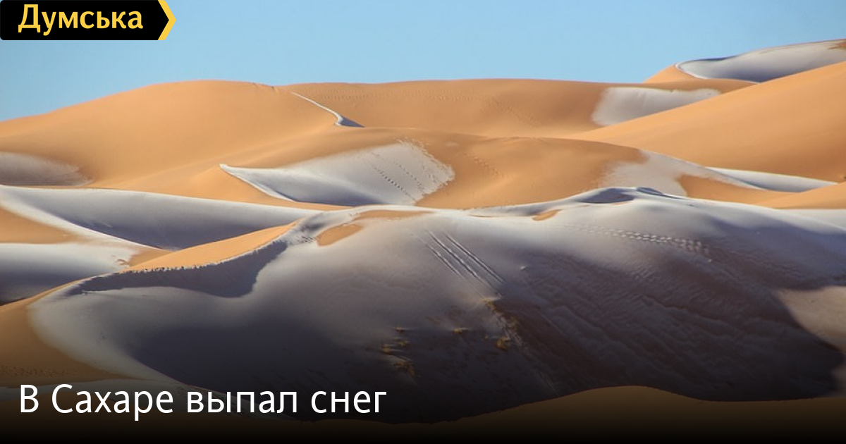 В африканской пустыне Сахаре температура воздуха опустилась до -2°C и выпал снег. Об этом сообщает Daily Mail. Редкое природное явление запечатлел фотограф Карим Бучетата. На поверхности песка образовались удивительные узоры из ледовых кристаллов. Также фотограф сделал снимки снега и льда в городе Айн-Сефра на северо-западе Алжира, известном как ворота в пустыню Сахара. Сообщается, что снег в песчаном регионе выпадает пятый раз за 42 года. Предыдущие случаи фиксировали в 1979, 2016, 2018 и 2021 годах. СМЕРТЬ РОССИЙСКИМ ОККУПАНТАМ! Заметили ошибку? Выделяйте слова с ошибкой и нажимайте control-enter Новости по этой теме: 7 ноября 2025: До +16, но с дождями: в Одессе прогнозируют ухудшение погоды 29 октября 2025: Котельные готовы: Одесса включит отопление через две недели, а начало ноября будет аномально теплым 8 октября 2025: Одесские школы и садики возвращаются к очному режиму работы 6 октября 2025: Из-за ухудшения погоды школы и садики Одесской области переводят на дистанционное обучение 1 октября 2025: Катастрофа, которую можно было предотвратить (блог) |