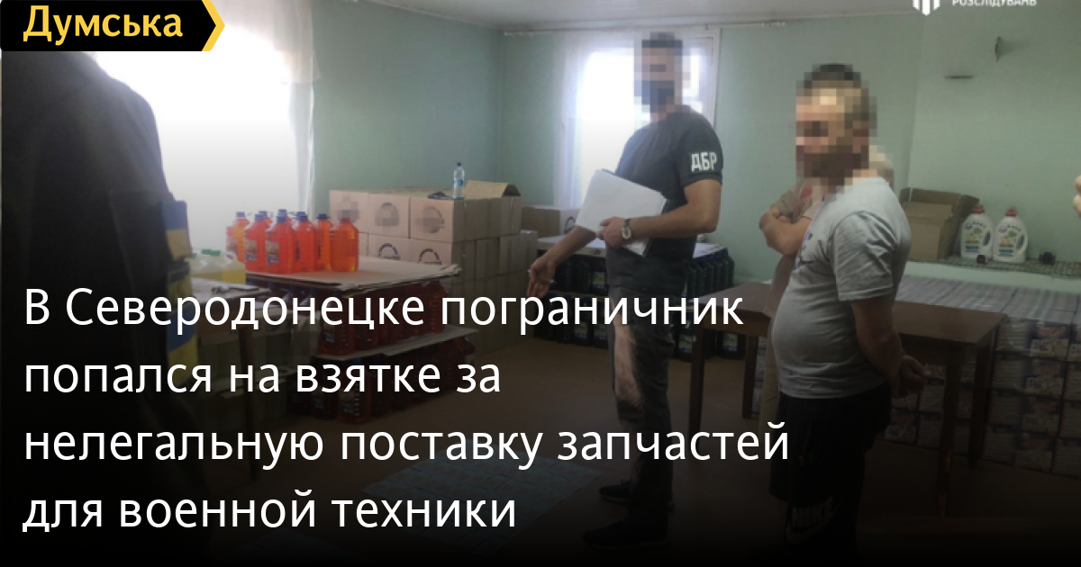 В Северодонецке пограничник попался на взятке за нелегальную поставку запчастей для военной техникиНачальник одной из служб Луганского погранотряда задержан сотрудниками территориального управления Государственного бюро расследований Краматорска при получении взятки. Как сообщают в пресс-службе ведомства, старший лейтенант требовал от предпринимателя 100 тыс. гривен за беспрепятственную поставку запчастей для военной техники. По данным следствия, за эти деньги он готов был подписать соответствующие накладные, а также обещал дальнейшее «сотрудничество» в бизнесе. Пограничника задержали в офисе предпринимателя во время получения денег. Проводятся обыски по месту его работы. Уголовное производство открыли по ч. 3 ст. 368 УК Украины (получение неправомерной выгоды должностным лицом). Задержанному светит до десяти лет лишения свободы. СМЕРТЬ РОССИЙСКИМ ОККУПАНТАМ! Заметили ошибку? Выделяйте слова с ошибкой и нажимайте control-enter Новости по этой теме: 15 июля 2025: Требовала 400 евро за подделку документов для пенсии: в Одесской области чиновница попалась на взятке (фото, видео) 27 июня 2025: За 40 тыс. грн хотел купить секретные разработки: в Одессе задержали сотрудника частной фирмы 6 июня 2025: Требовал три тысячи долларов за справку об инвалидности: в Одессе задержали главврача больницы (фото) |
