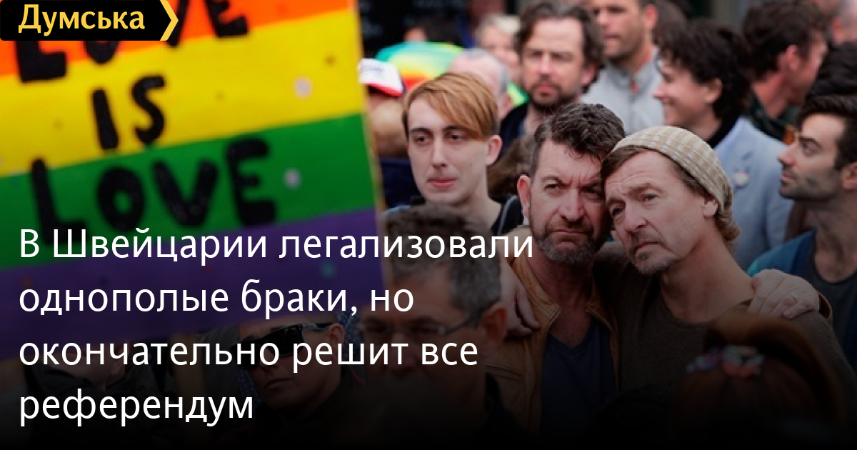 В Швейцарии легализовали однополые браки, но окончательно решит все референдумВ Швейцарии утвердили закон о разрешении однополых браков. В Национальном совете закон поддержали 136 депутатов, 48 высказались против, девять воздержались. В Совете кантонов (верхняя палата парламента) инициативу поддержали 24 депутата, против высказались 11, семеро воздержались. Как пишет «РБК-Украина» со ссылкой на The Local, закон обсуждался с 2013 года. Согласно документу однополые пары получают право на брак, а лесбиянки получат доступ к банку спермы. Но, вероятно, вопрос еще будет обсуждаться. Отмечается, что представители христианской и ультраконсервативной партий объявили о планах провести референдум для утверждения этого закона швейцарцами. Швейцария оставалась одной из немногих стран Европы, где однополые браки не были разрешены. До этого в стране однополым парам можно было зарегистрировать партнерство, но такая форма регистрации отношений не давала тех же прав, что и брак. СМЕРТЬ РОССИЙСКИМ ОККУПАНТАМ! Заметили ошибку? Выделяйте слова с ошибкой и нажимайте control-enter |