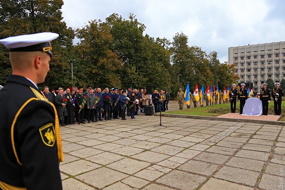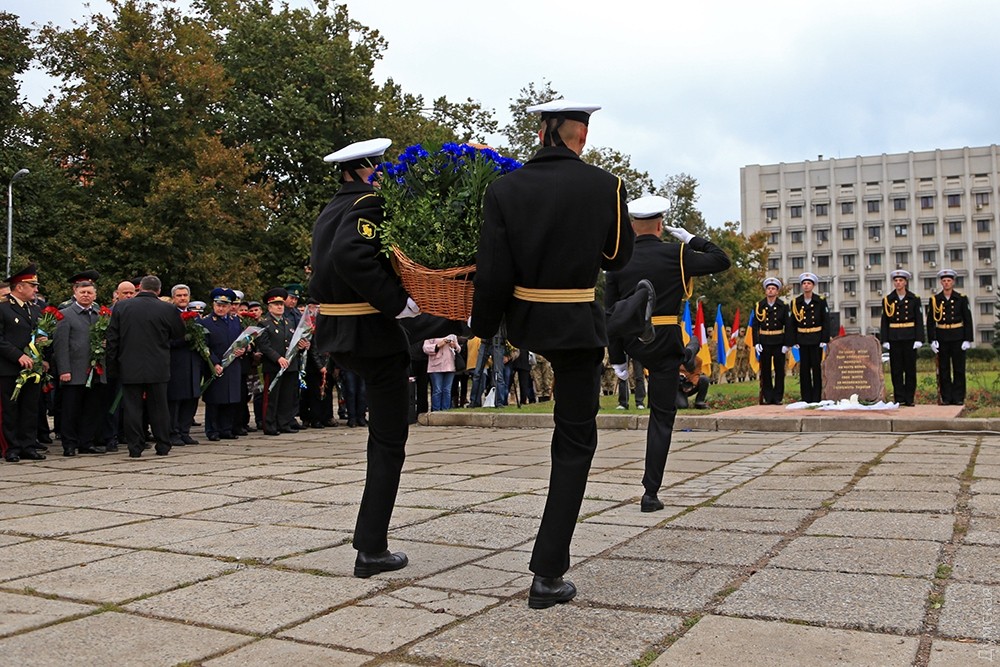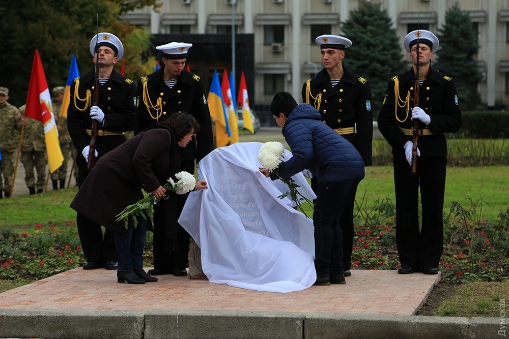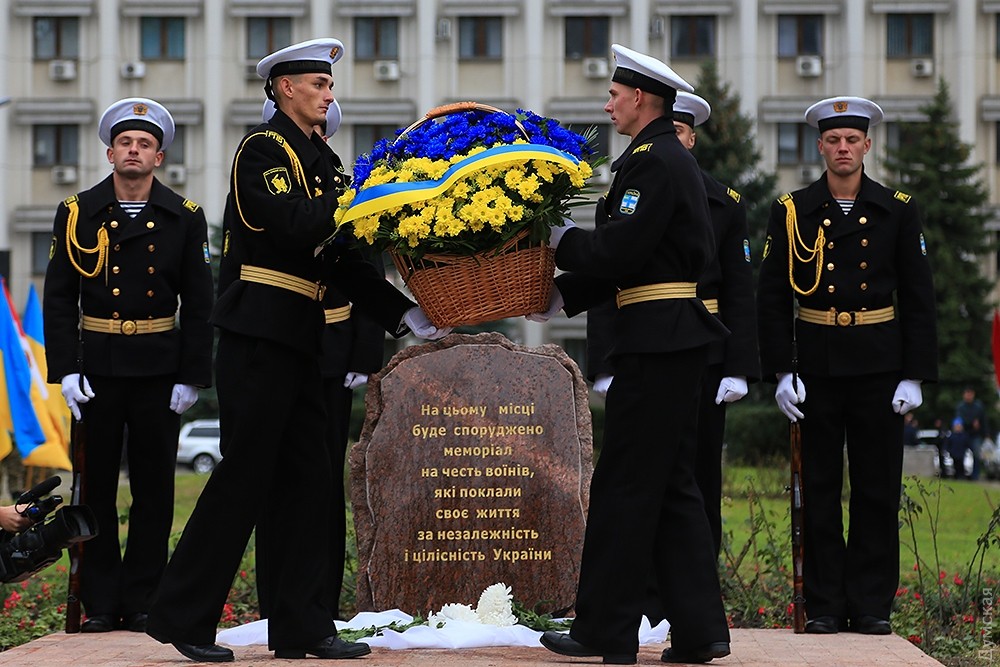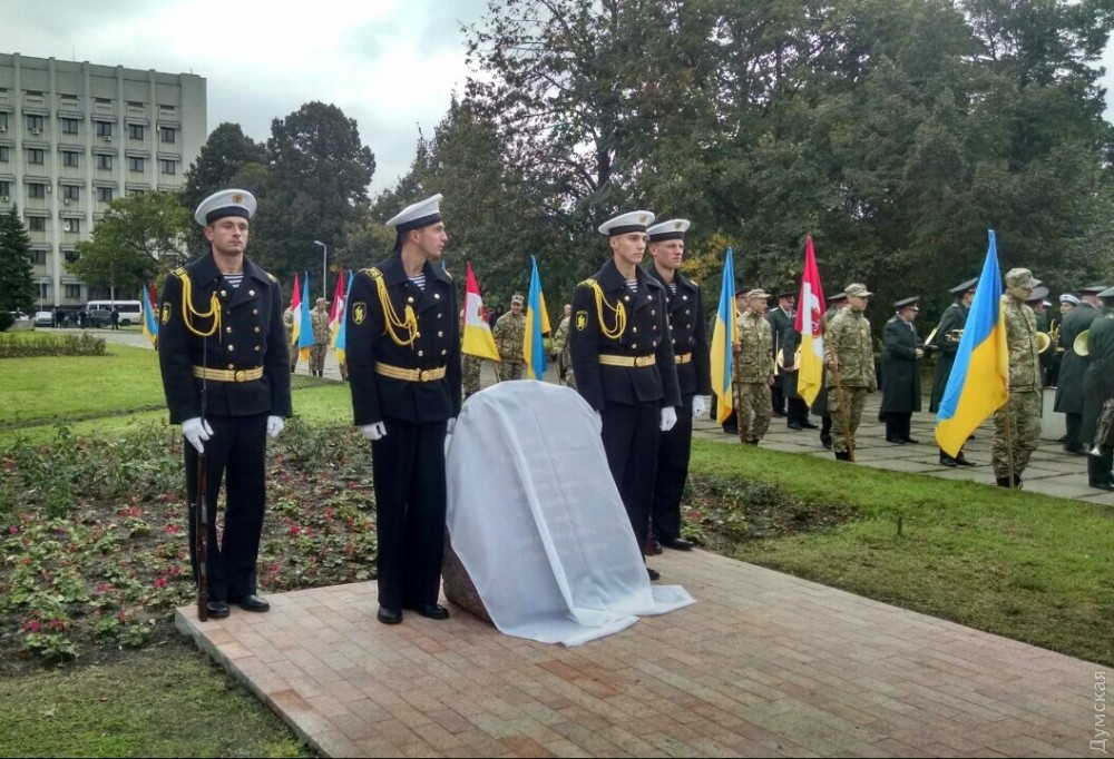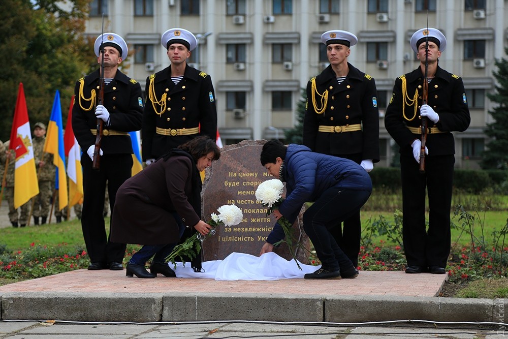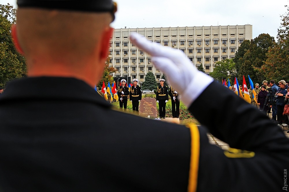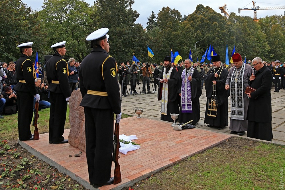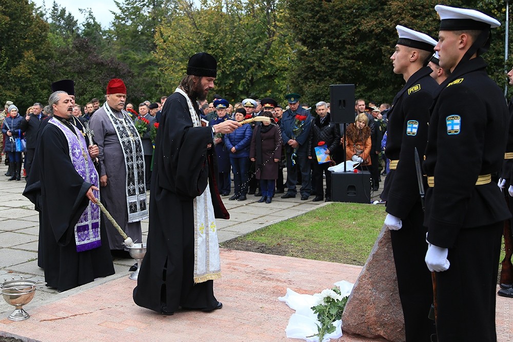 Представители одесского духовенства освятили камень, после чего к нему возложили цветы и венки. Церемонию завершил торжественный марш роты почетного караула оперативного командования «Юг». Фото — Сергей Смоленцев