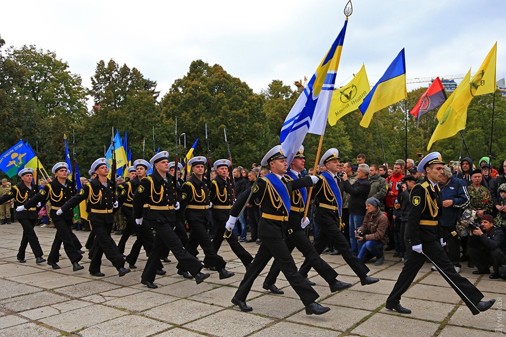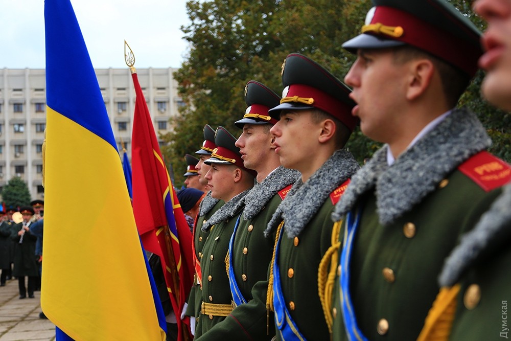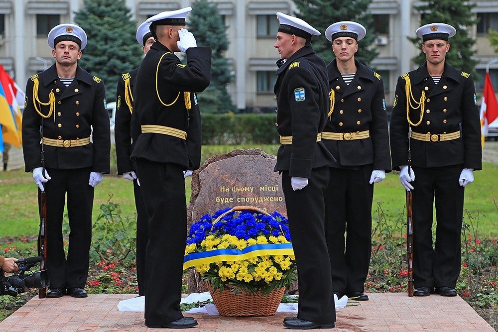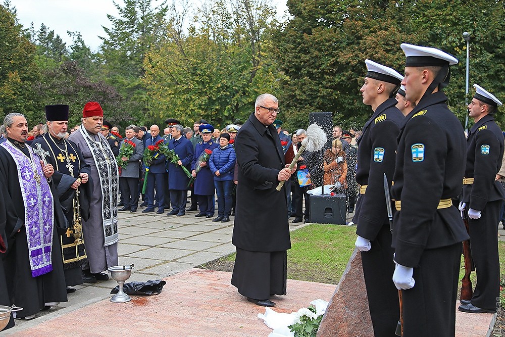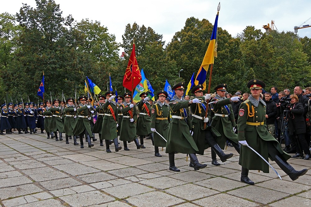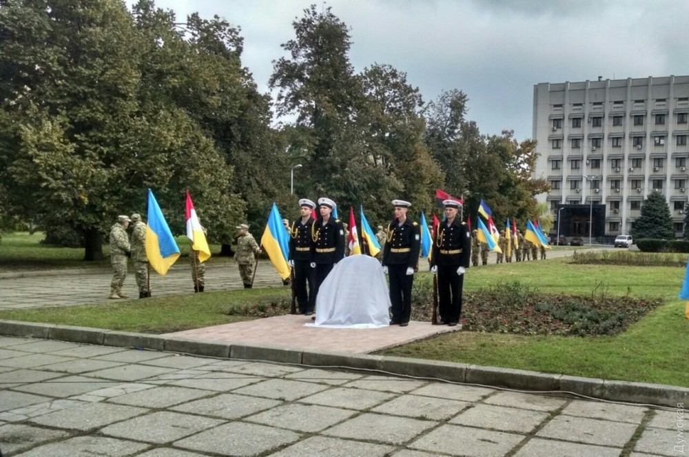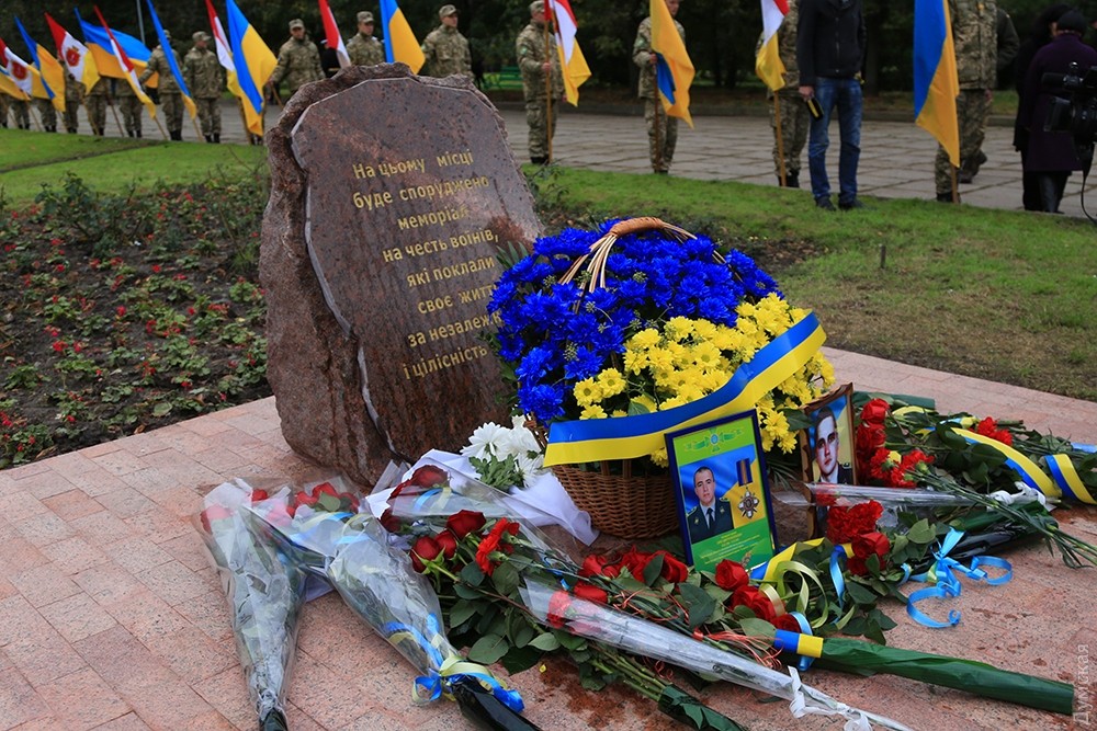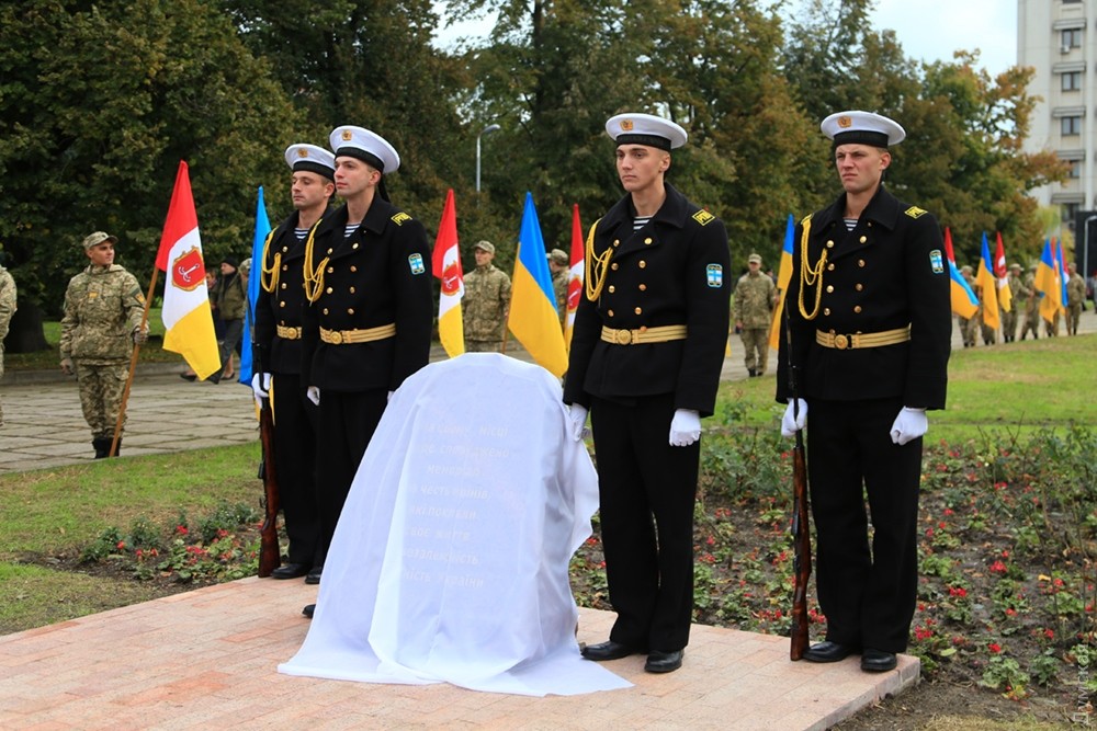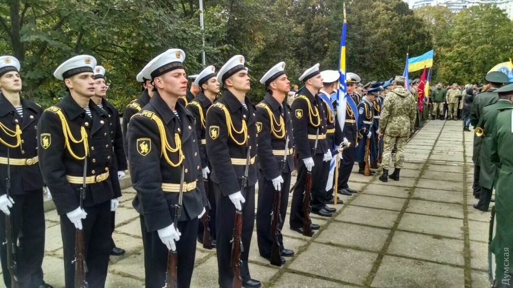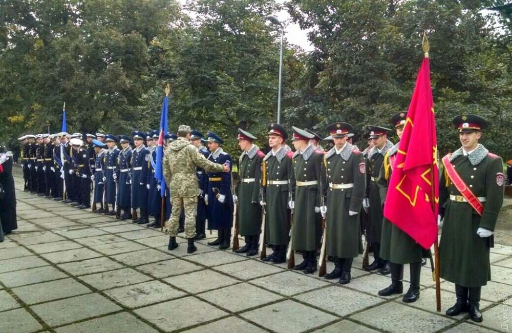 Представители одесского духовенства освятили камень, после чего к нему возложили цветы и венки. Церемонию завершил торжественный марш роты почетного караула оперативного командования «Юг». Фото — Сергей Смоленцев