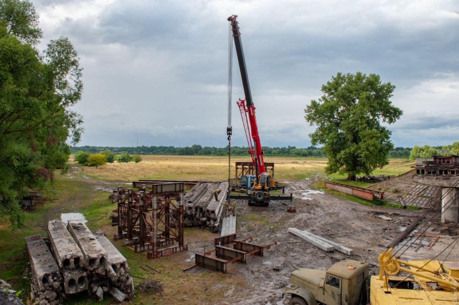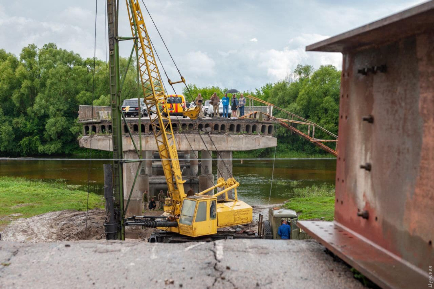 На Сумщині відновлюють стратегічний міст, зруйнований під час боїв з окупантамиВійськовослужбовці Державної спеціальної служби транспорту разом із місцевими аграріями відновлюють стратегічний міст у Конотопському районі Сумської області, який було зруйновано під час боїв із російськими військами на початку повномасштабної війни. Про це повідомив голова Сумської обласної військової адміністрації Дмитро Живицький. Він зазначив, що міст має критичне значення для місцевих сільгоспвиробників та підприємців. Зараз, через те, що міст зруйнований, вони змушені долати втричі довший шлях. Наразі ведуться підготовки до встановлення опор мосту, після чого дві сторони мосту об'єднають новими бетонними прольотами, на мосту обладнають проїжджу частину, тротуари та огорожу. За попередніми підрахунками, реконструкція завершиться за два тижні. СМЕРТЬ РОСІЙСЬКИМ ОКУПАНТАМ! Помітили помилку? Виділяйте слова з помилкою та натискайте control-enter |