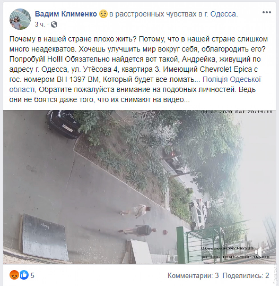 Об этом сообщает жилец дома на Утесова, который опубликовал запись с камер видеонаблюдения.