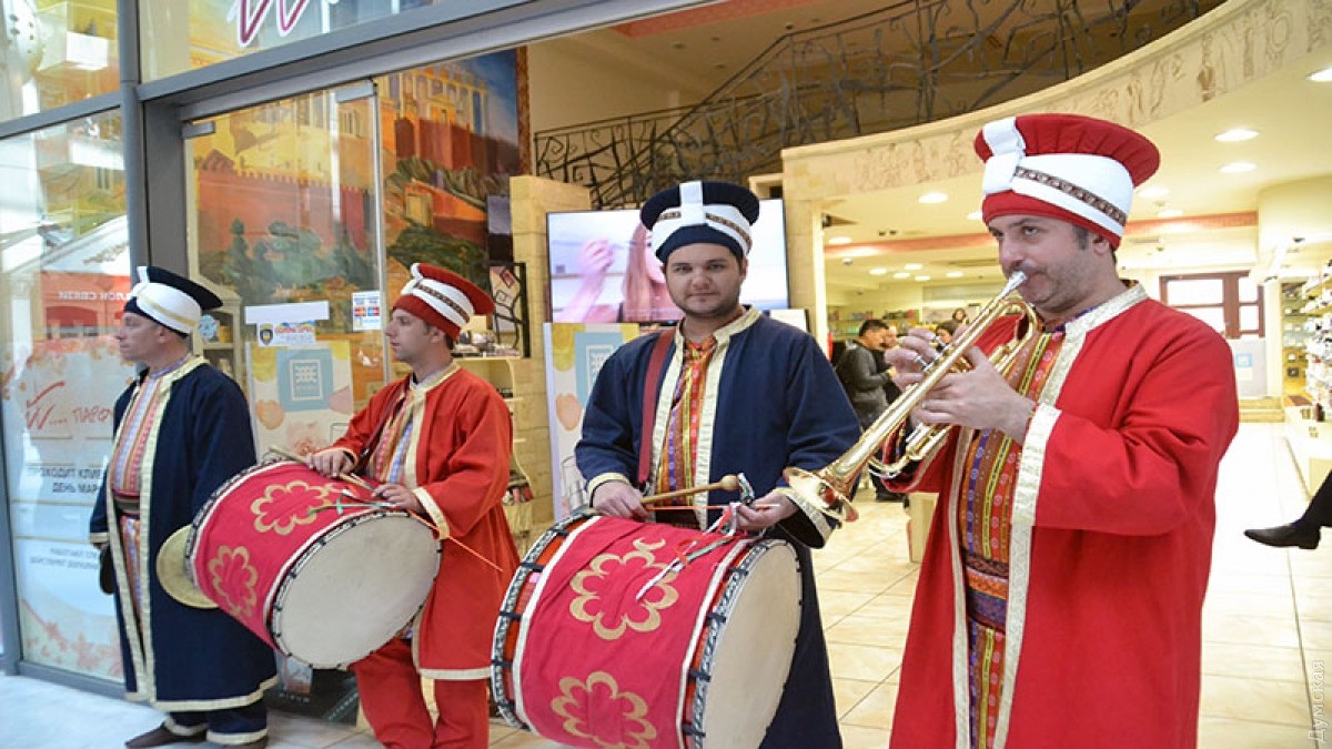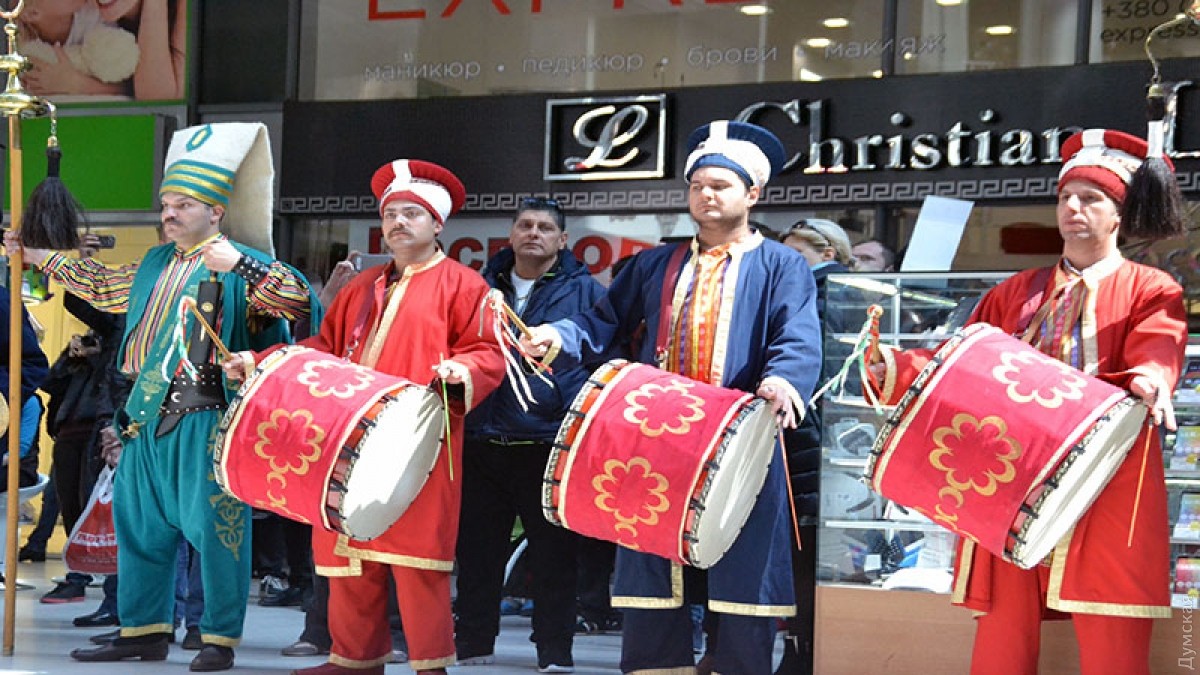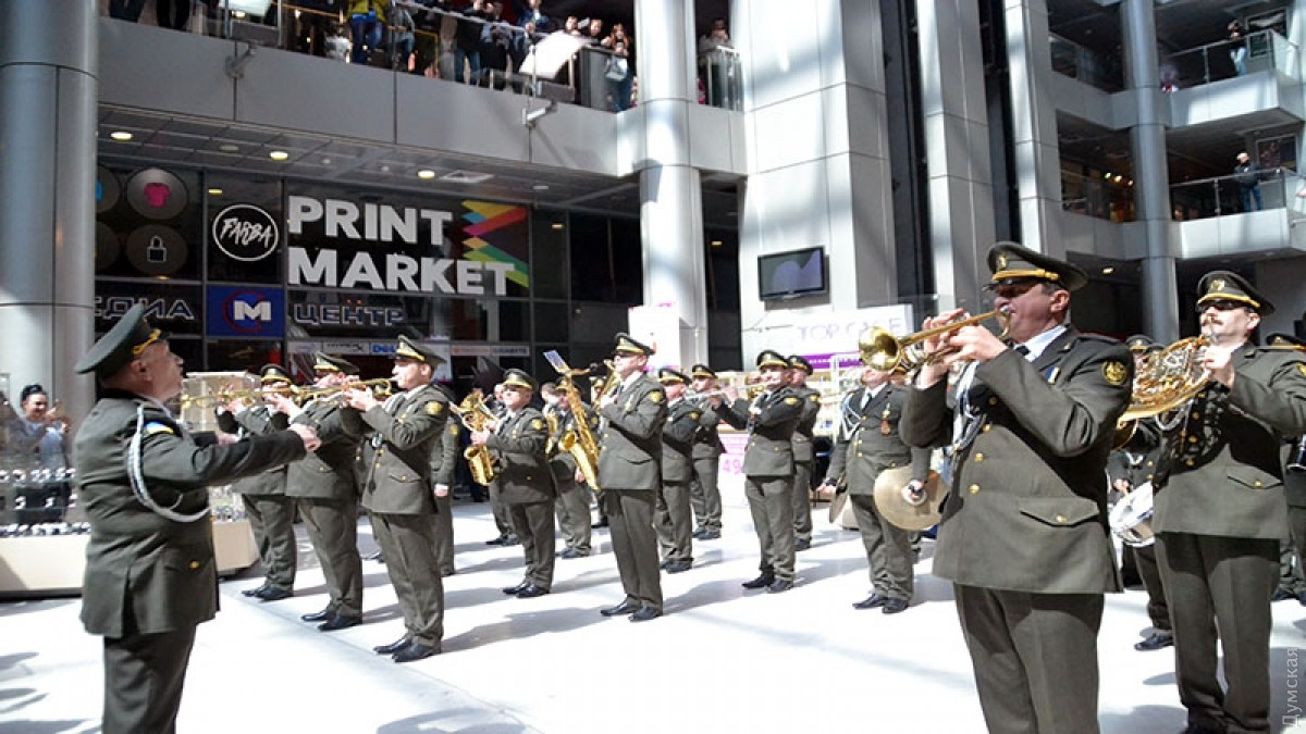 По случаю празднований 73-й годовщины освобождения Одессы от немецко-румынских войск, военные оркестры устроили флешмоб в торговом центре «Афина». Так, неожиданно для посетителей с одной стороны в торговый центр зашел оркестр одесской Военной академии, а с другой — в облике янычар турецкий оркестр из города Бурса. Несмотря на относительно маленькие размеры холла торгового центра, музыканты Военной академии успешно исполнили несколько композиций и показали свое фирменное перестроение, чем вызвали аплодисменты у собравшихся. Отметим, что сейчас заключительный концерт духовых оркестров фестиваля «Весенняя Одесса» проходит на Театральной площади. За ним можно наблюдать онлайн. Фото, видео — Андрей Колисниченко СМЕРТЬ РОСІЙСЬКИМ ОКУПАНТАМ! Помітили помилку? Виділяйте слова з помилкою та натискайте control-enter |