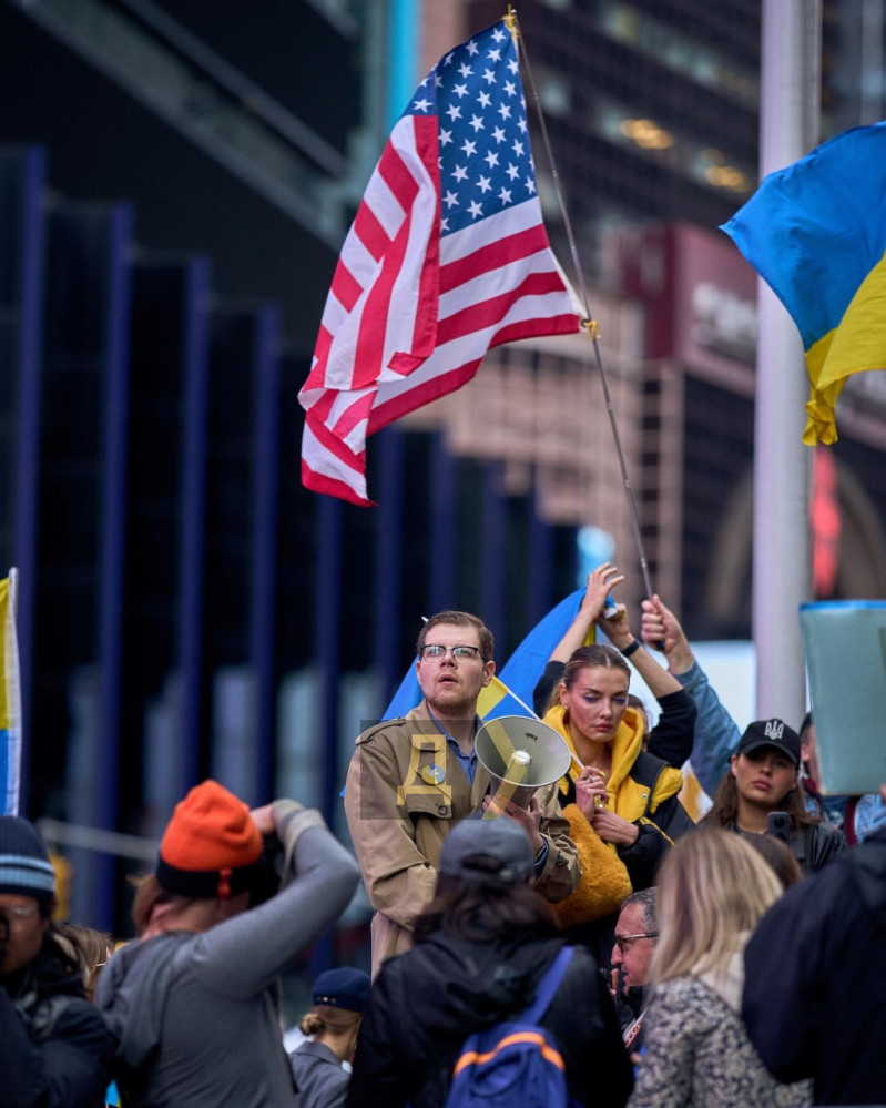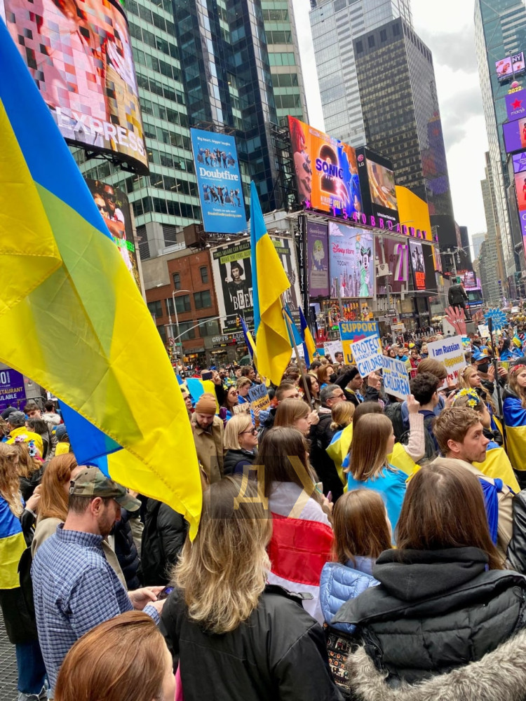 Несколько тысяч жителей Нью-Йорка сегодня днем в очередной раз вышли на Таймс-сквер в поддержку Украины. Корреспондент «Думской» в Нью-Йорке передал нам фотографии с мероприятия. Он отмечает, что в акции приняли участие как украинцы, которые относительно недавно приехали в США, так и семьи украинских эмигрантов и американцы, которые небезразличны к судьбе нашей Родины и поддерживают Украину в тяжелое время. Отдельное внимание участники мероприятия уделили преступлениям российских нацистов на украинской земле, убийству детей в осажденных и временно оккупированных населенных пунктах. Фото: Anastasiia Nikishyna, AJ Stetson СМЕРТЬ РОСІЙСЬКИМ ОКУПАНТАМ! Помітили помилку? Виділяйте слова з помилкою та натискайте control-enter |