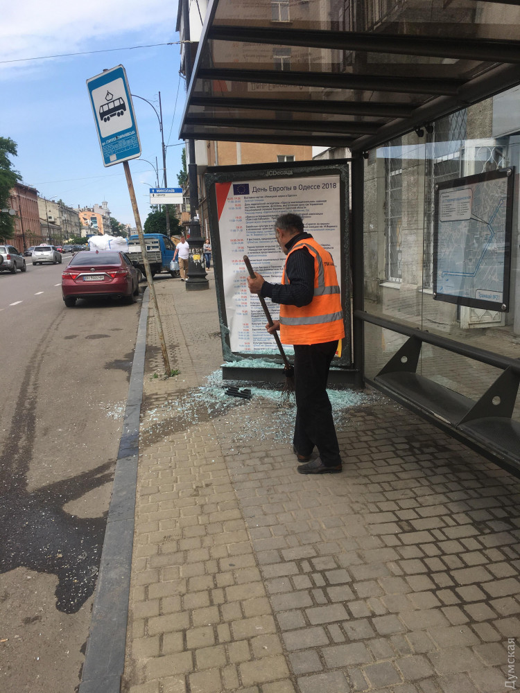 В центре Одессы черный «Мерседес» въехал в остановку: водитель был в состоянии наркотического опьянения (обновлено)