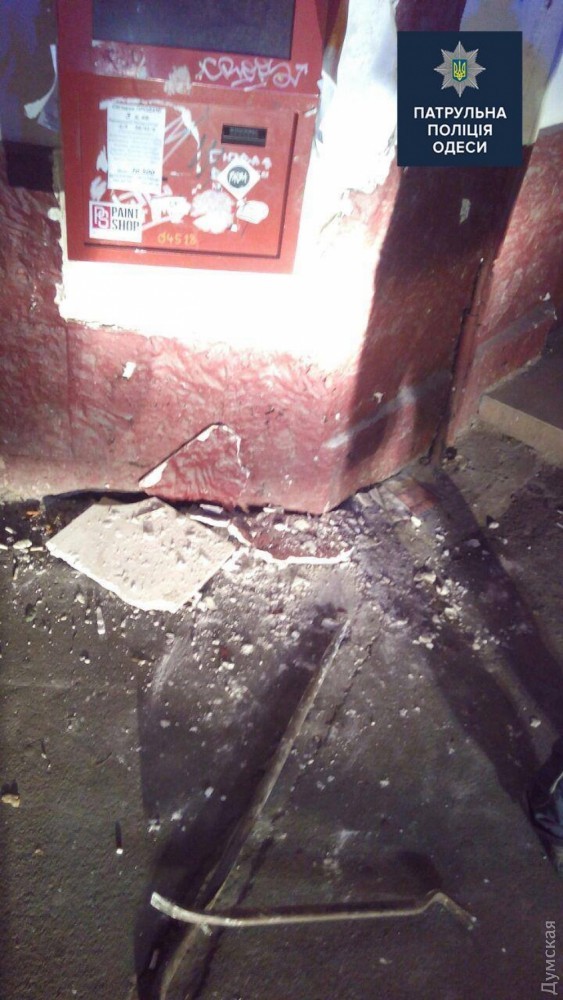 В центре Одессы два грабителя пытались ломом разбить платежный терминал