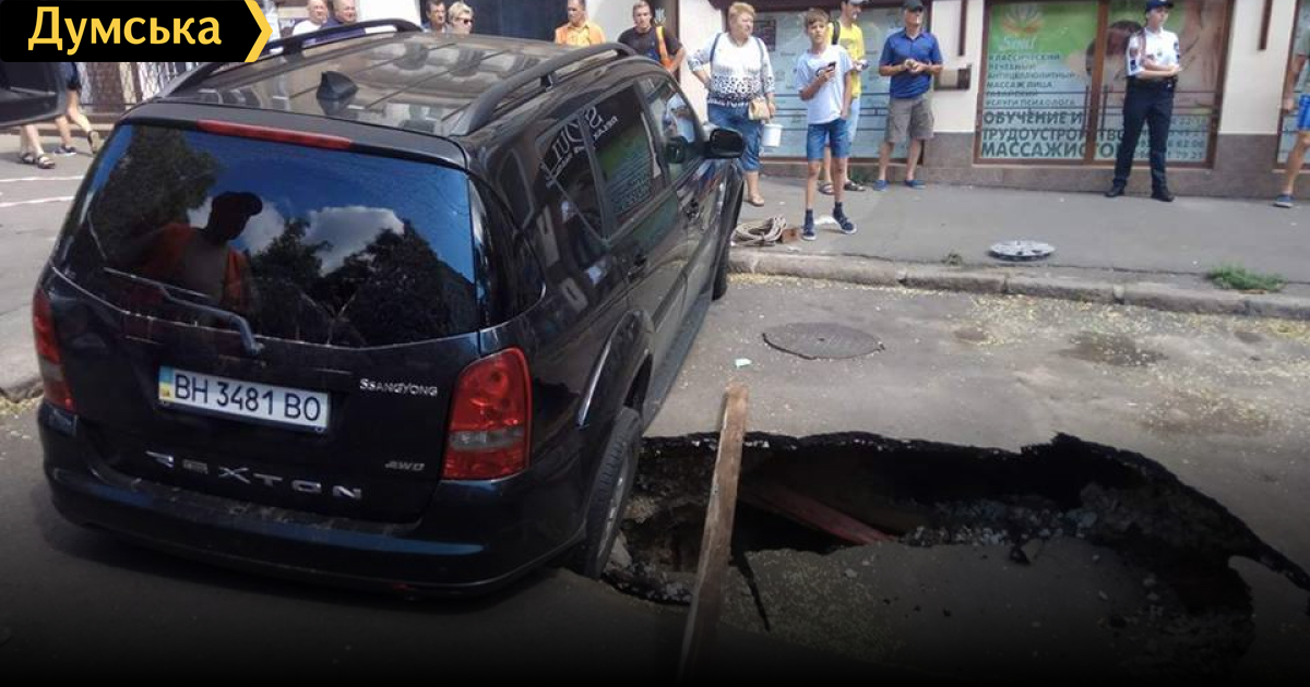 Если уж обращаться к истории одесских мегапровалов, то можно вспомнить, например, год 1988, угол Филатова/Космонавтов, "Волга" полностью в провале теплотрассы. Где-то лет 12 назад Ришельевская угол Базарная, "ВАЗ 2109" провалился с крышей в провал заполненный водой с глиной. Присутствовал при доставании бедняги даже фото сохранилось. В 2002 ночью парень влетел в дырку на Градоначальнической напротив бывшего кинотеатра "МИР"и погиб.