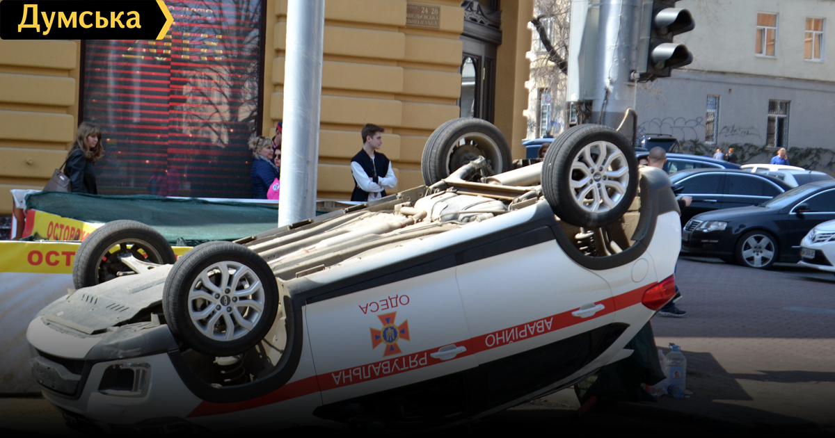 В центре Одессы после столкновения с внедорожником перевернулась машина ГСЧС
