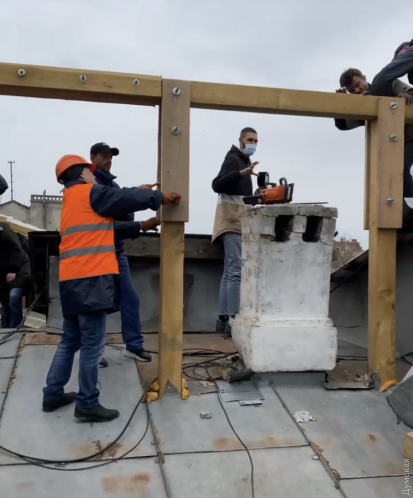 Демонтаж незаконной мансарды, появившейся на крыше памятника архитектуры по адресу Пушкинская, 34, начался сегодня. От нахалстроя здание освобождают представители органов местного самоуправления, передает корреспондент «Думской». Еще в ноябре прошлого года жильцы дома жаловались на незаконное строительство, которое затеяли собственники хостела «Пушкинский», занимающего две квартиры на последнем этаже. Реконструкция началась еще в июле, а в активную стадию перешла в ноябре. К дому начали подвозить горы строительных материалов, появился с десяток рабочих. Строительство велось на площади примерно 1000 кв. м. Люди опасались, что их дом такой нагрузки просто не выдержит: в здании появились свежие трещины, падала лепнина, «отошла» фасадная стена со стороны Пушкинской. Кроме того, подвал одной части дома постоянно затоплен — уровень воды держится на отметке 10 см. В 2014 году здесь произошел пожар — выгорела крыша над частью дома. После тушения перекрытия дома сохли до полугода, а некоторые прогнили. Пушкинская, 34 — памятник архитектуры, известный как доходный дом Шполянского. Он построен в конце XIX века по проекту архитектора Бернардацци. Фото Демьяна Ганула СМЕРТЬ РОСІЙСЬКИМ ОКУПАНТАМ! Помітили помилку? Виділяйте слова з помилкою та натискайте control-enter Новини по цій темі: 26 червня 2025: Сумнівний подарунок: пам'ятку архітектури на Приморському бульварі намагаються повернути одеській громаді 17 серпня 2025: Продають мерч у залі Костанді, ховають Стародавній Єгипет у підвалах і виставляються в Німеччині: як виживають одеські музеї (частина перша) 27 лютого 2025: Компанія з групи Коломойського готується до будівництва торгового центру біля Дерибасівської 28 листопада 2024: Будинок із «милицями»: на пам`ятку архітектури в одеському провулку Ройтбурда чекають протиаварійні роботи за 20 млн грн (фото) |