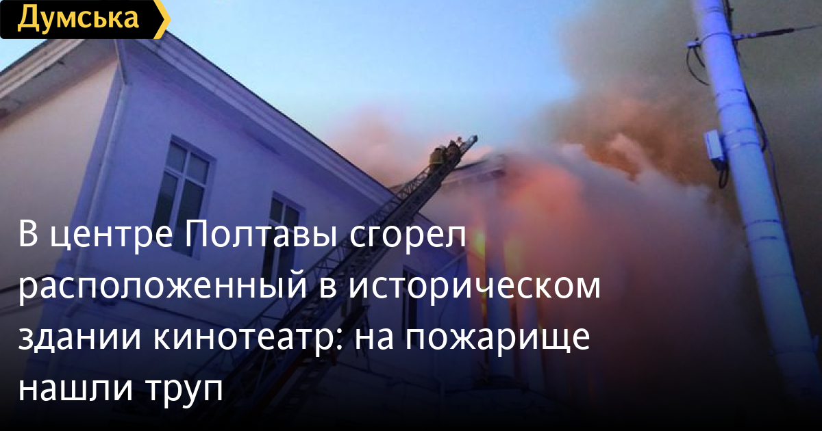 В центре Полтавы сгорел расположенный в историческом здании кинотеатр: на пожарище нашли трупВ Полтаве спасатели больше 8 часов тушили масштабный пожар, который вспыхнул в здании бывшего дворянского собрания, где сейчас размещается кинотеатр имени Ивана Котляревского. Как сообщили в пресс-службе ГСЧС, пожар вспыхнул около 4:30 утра, полностью ликвидировать возгорание удалось в 13:06. Установлено, что очаг возгорания был в одном из кафе, которое также находится в здании. По информации местных СМИ, в результате пожара выгорели рестораны «Версаль», «Территория мяса» и «ГрамофонЪ». Огнем был уничтожен практически весь первый этаж исторического здания, обвалилась крыша. На месте пожара обнаружили тело неизвестного человека. Полиция возбудила уголовное производство. Здание дворянского собрания было построено еще в 1810 году и находится в центральной части Полтавы. СМЕРТЬ РОССИЙСКИМ ОККУПАНТАМ! Заметили ошибку? Выделяйте слова с ошибкой и нажимайте control-enter |
