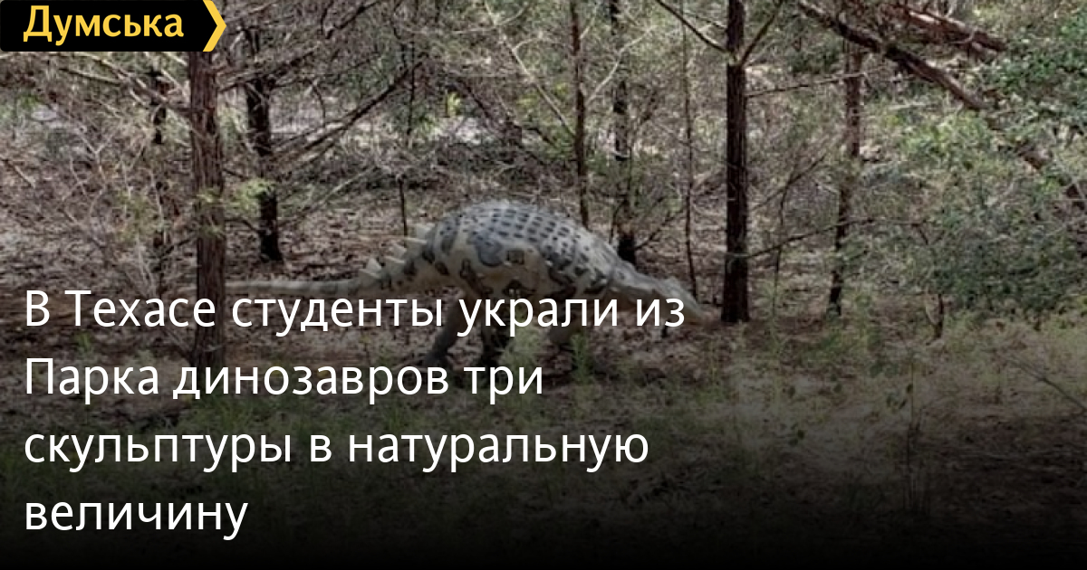В Техасе студенты украли из Парка динозавров три скульптуры в натуральную величинуИз Парка динозавров Сидар-Крик в Техасе на прошлой неделе исчезли три скульптуры детенышей — диметродона, дилонга и минми, длина которых от 1,8 до 3 метров. На своей странице в «Фейсбуке» парк пообещал вознаграждение в тысячу долларов за информацию, которая поможет найти виновных. Вскоре выяснилось, что динозавров украли студенты одного из братств Техасского университета. О местонахождении скульптур владельцам парка сообщил некий доброжелатель. СМЕРТЬ РОССИЙСКИМ ОККУПАНТАМ! Заметили ошибку? Выделяйте слова с ошибкой и нажимайте control-enter |