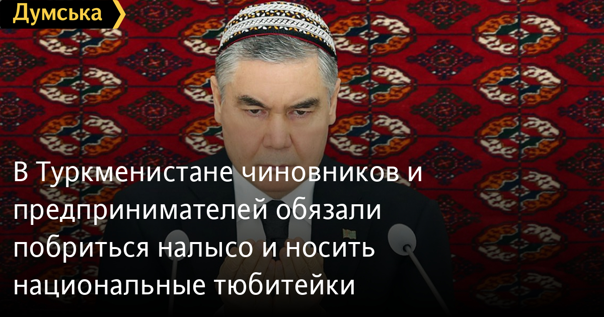 В Туркменистане чиновников и предпринимателей обязали побриться налысо и носить национальные тюбитейкиВ Лепабском велаяте (регион на востоке Туркменистана) государственных чиновников, а также руководителей частных компаний обязали побриться налысо и носить тахья (национальную туркменскую тюбетейку). Как сообщает Радио Азатлык (местная редакция Радио Свобода), требования к внешнему виду мужчин в Лепабе будут длиться 40 дней и связаны с трауром по умершему отцу президента Мяликгулы Бердымухамедову. Отец главы государства Гурбангулы Бердымухамедова скончался 18 мая в возрасте 88 лет. Требования соблюдать определенный внешний вид распространилось и на высших государственных функционеров. Через семь дней после кончины отца, глава государства появился в телеэфире в сахья. Со дня смерти отца президента Сердар Бердымухамедов, являющийся вице-премьером правительства, и другие чиновники на публике также появляются в туркменских национальных тюбетейках. Нововведения коснулись и внешнего вида женщин, работающих в бюджетных организациях. В частности, преподавательницы в знак траура носят шали с черными узорами. СМЕРТЬ РОССИЙСКИМ ОККУПАНТАМ! Заметили ошибку? Выделяйте слова с ошибкой и нажимайте control-enter |