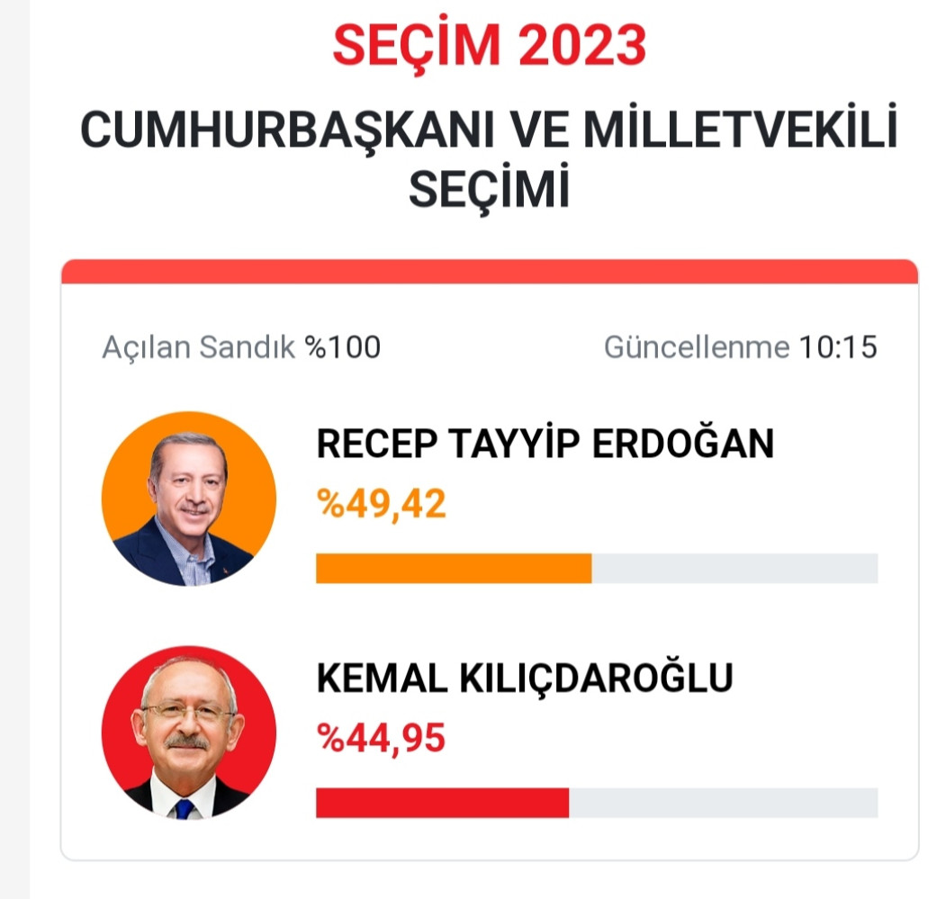 У Туреччині підраховано 100% голосів: президента оберуть у другому турі👍 265 🔥 34 👎 9 ❤ 9 🙏 2 Чинний президент Туреччини Реджеп Ердоган і лідер об'єднаної опозиції Кемаль Кілічдароглу виходять у другий тур виборів голови держави. Підраховано 100% голосів, пише видання Sozcu. Станом на 6:00 15 травня в Туреччині підраховано 100% голосів виборців. Згідно з даними Вищої виборчої ради, чинний президент Реджеп Таїп Ердоган набирає 49,34%, лідер опозиції Кемаль Кілічдароглу — 45%. Ердоган перемагає у 51 провінції, лідер опозиції Кілічдароглу — у 30 (на сході, заході та частково на півдні). Столична провінція Анкара і Стамбул продемонстрували більшу підтримку Кілічдароглу. Президентські перегони продовжаться у другому турі, який відбудеться 28 травня. Нагадаємо, 14 травня в Туреччині відбулися президентські та парламентські вибори. О 17:00 завершилося голосування. Згідно з інформацією ЗМІ, явка виборців становила рекордні 88,3%. Загалом для виборців по всій країні було встановлено 191 885 урн для голосування. СМЕРТЬ РОСІЙСЬКИМ ОКУПАНТАМ! Помітили помилку? Виділяйте слова з помилкою та натискайте control-enter |