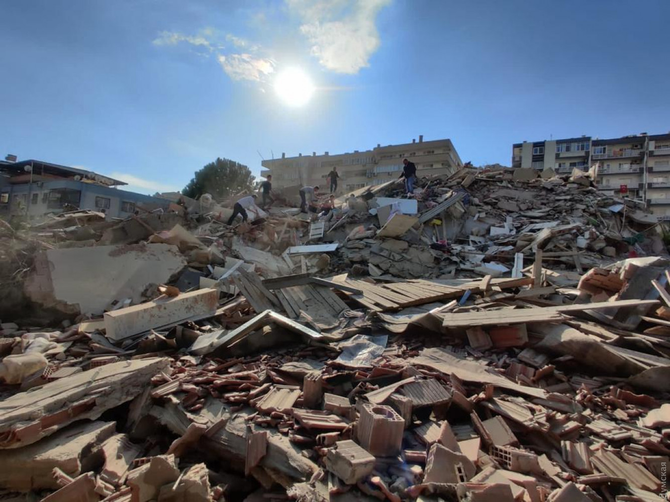 В Турции произошло мощное землетрясение: разрушены жилые дома, как минимум четверо погибшихВ турецком Измире произошло мощное землетрясение. Сообщается, что эпицентр землетрясения магнитудой 6,6 произошел у побережья района Сеферихисар в Эгейском море на глубине 11,8 км. Толчки ощущались в Стамбуле, а также регионах Мраморного и Эгейского морей. В МВД Турции сообщили, что в результате землетрясения в районах Борнова и Байраклы в городе Измир разрушены шесть жилых зданий. По предварительным данным, в результате землетрясения в Измире погибли 4 человека, 120 пострадавших. Также сообщается, что после землетрясения на местных пляжах поднялся уровень воды и город накрыло волной. Президент Турции Реджеп Тайип Эрдоган выразил сочувствие согражданам, пострадавшим в результате землетрясения в Измире. СМЕРТЬ РОСІЙСЬКИМ ОКУПАНТАМ! Помітили помилку? Виділяйте слова з помилкою та натискайте control-enter |