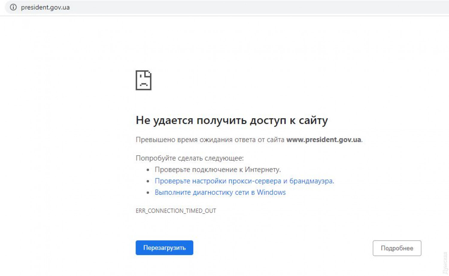В Украине перестали работать сайты президента, СБУ, НАБУ и разведчиков (обновлено)Масштабный сбой в работе официальных сайтов государственных органов произошел в Украине. В настоящее время не работает сайт Офиса президента Украины, Службы безопасности Украины, Национального антикоррупционного бюро. Также невозможно перейти на страницы Службы внешней разведки и Государственной службы спецсвязи и защиты. Связана ли данная проблема с хакерской атакой, в ОП пока не комментируют. Как сообщили изданию РБК в киберполиции, сообщений об атаках на сайт президента к ним не поступало. «Возможно, идут плановые технические работы», — добавили в ведомстве. ОБНОВЛЕНО В 21:03. Сайты заработали. Что стало причиной неполадки — пока неизвестно. СМЕРТЬ РОСІЙСЬКИМ ОКУПАНТАМ! Помітили помилку? Виділяйте слова з помилкою та натискайте control-enter |