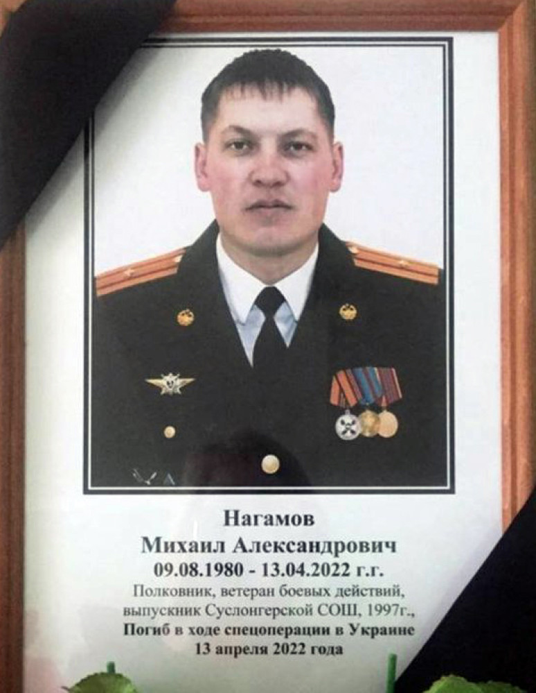 Очередной российский полковник ликвидирован в Украине. Об этом сообщает в Twitter блоггер Necro Mancer, который собирает данные об уничтоженных оккупантах в результате их полномасштабного вторжения в нашу страну. Так, по данным российских СМИ, ликвидирован уроженец Суслонгера (республика Марий Эл рф), полковник Михаил Нагамов 1980 года рождения. Это произошло еще 13 апреля. Похоронить оккупанта собираются 21 апреля на федеральном военном кладбище в Мытищах Московской области. Сообщается, что Нагамов был командиром инженерно-саперного полка в Ростове Ярославской области.