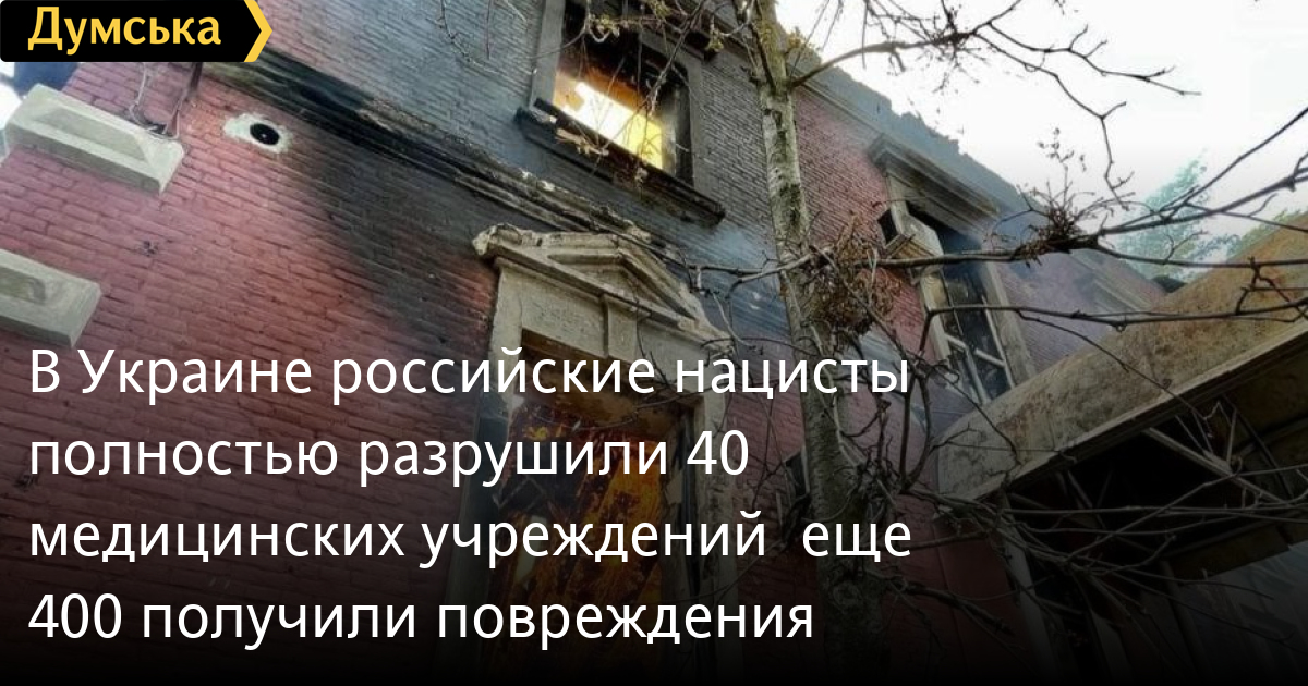 В Украине российские нацисты полностью разрушили 40 медицинских учреждений — еще 400 получили повреждения400 учреждений здравоохранения повредили и еще 40 полностью разрушили российские нацисты в Украине по состоянию на 5 мая. Как сообщила омбудсмен Людмила Денисова, страна-агрессор лишает граждан Украины права на доступ к необходимой медицинской помощи. Так, вследствие вражеских обстрелов вспыхнул Лисичанский противотуберкулезный диспансер, базировавшийся в старинном здании. На Луганщине нет ни одного уцелевшего лечебного учреждения. «Во многих фронтовых и причастных к линии фронта регионах ограничен доступ пациентов к важным лекарствам. Кроме того, российские военные продолжают блокировать гуманитарные конвои, которые могли бы доставить лекарства на временно оккупированные территории», — сообщает Денисова. СМЕРТЬ РОССИЙСКИМ ОККУПАНТАМ! Заметили ошибку? Выделяйте слова с ошибкой и нажимайте control-enter |