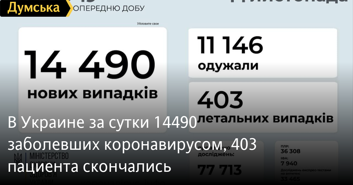 11490 новых случаев заражения COVID-19зафиксировали 13 ноября на территории Украины. За время пандемии в стране заболели коронавирусом 3217639 человек. Как сообщили в Министерстве здравоохранения, вчера от осложнений ковида умерли 403 пациента (76705). 11146 человек вылечились (2631240). Ковидные больницы по стране заняты на 62% (48612 коек из 78387). Первую дозу вакцины вчера получили 65757 человек (12187559), а вторую – 79484 (8665945). СМЕРТЬ РОССИЙСКИМ ОККУПАНТАМ! Заметили ошибку? Выделяйте слова с ошибкой и нажимайте control-enter |