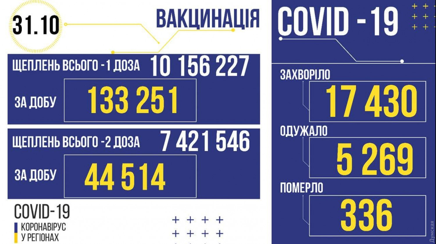 В Украине за сутки коронавирусом заразились 17430 человек, умерли 336 заболевших