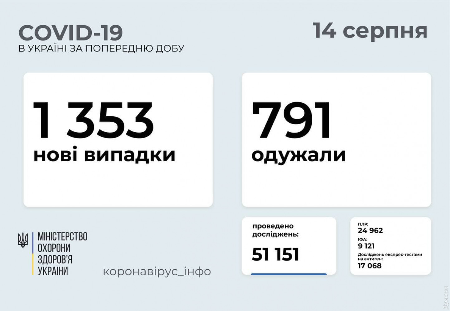 1353 новых случаев заражения коронавирусной инфекцией зафиксировали 13 августа в Украине. За время пандемии в стране «ковидом» заболели 2265217 человек. По данным Минздрава, вчера 21 житель Украины скончался от осложнений коронавируса (53238). 791 пациент вылечился (2196589), «ковидные» больницы по стране заняты на 10,5% (3984 койки из 38118). Вчера первую дозу вакцины получили 106206 украинцев (4644647), а вторую 55586 (2688903). СМЕРТЬ РОСІЙСЬКИМ ОКУПАНТАМ! Помітили помилку? Виділяйте слова з помилкою та натискайте control-enter |