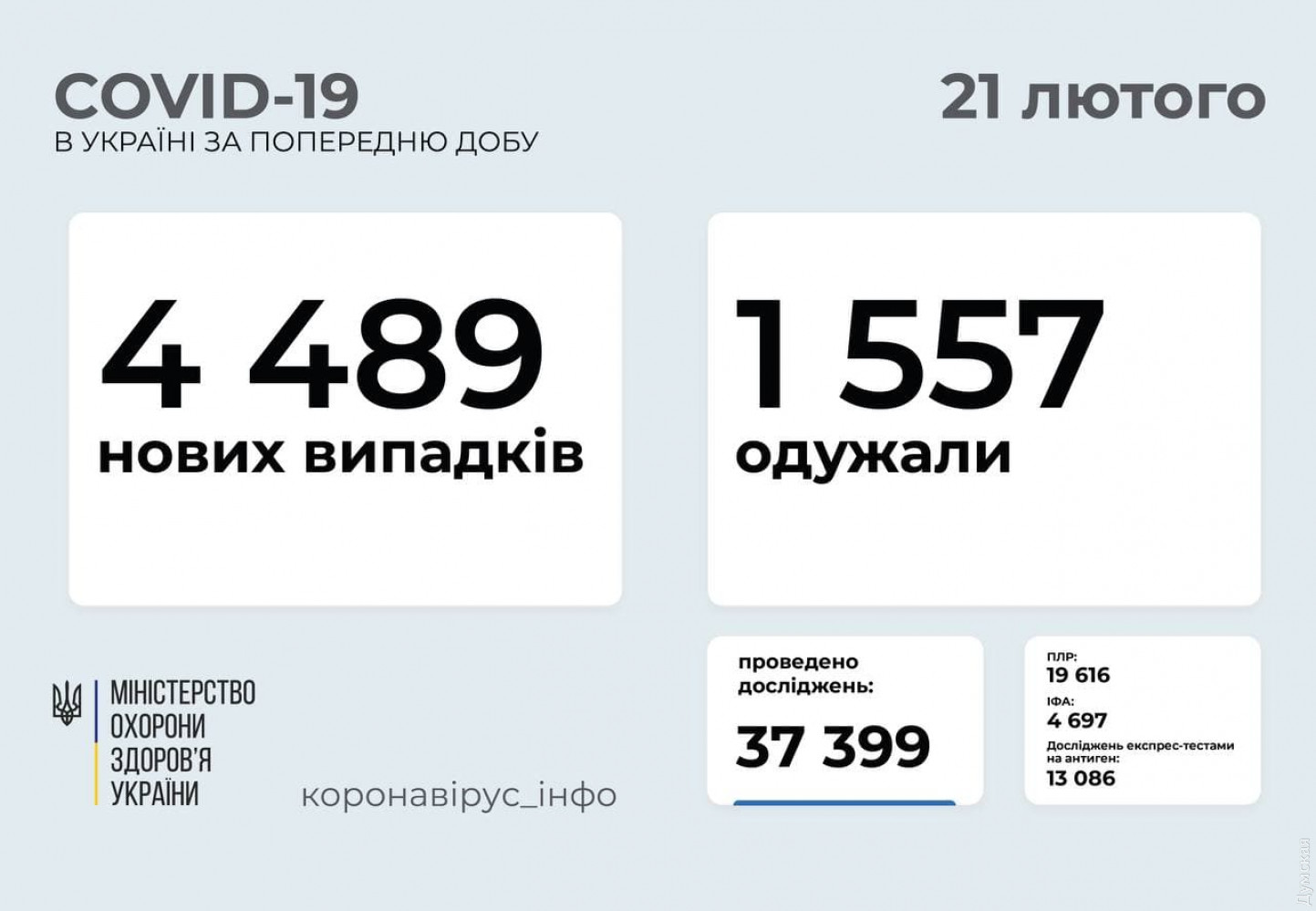 4489 новых случаев заболевания коронавирусной инфекцией обнаружили в Украине 20 февраля. С начала пандемии в стране заболели уже 1304456 человек. По данным Минздрава, самые высокие темпы распространения «ковида» вчера были в Ивано-Франковской области (618 заболевших за сутки), Винницкой (482) и Житомирской (365) областях. От осложнений коронавируса вчера умерли 58 человек (25103 за все время). Самая высокая летальность была в Ивано-Франковской области – 9 смертей, Закарпатской области – 7 и в Киеве -6. Излечились от COVID-19 за минувшие сутки 1557 человек (1146073). В Харьковской области – 190, в Ивано-Франковской области – 128, в Черновицкой – 123. Новые подозрения на «ковид» получили 4537 человек (1428540 с начала пандемии). «Лидируют» Ивано-Франковская область – 601, Винницкая область – 483 и Житомирская область – 376. СМЕРТЬ РОСІЙСЬКИМ ОКУПАНТАМ! Помітили помилку? Виділяйте слова з помилкою та натискайте control-enter Новини по цій темі: 4 березня 2023: "Вакцини-довгожителі", або Як щеплення проти COVID-19 перетворилися в Україні на небезпечний ритуал 27 січня 2023: МОЗ зобов`язали опублікувати договори на закупівлю вакцин проти COVID-19: апеляційний суд задовольнив позов журналіста "Думської" 11 січня 2023: За тиждень в Одесі зафіксовано 159 випадків ковіду 4 січня 2023: За тиждень в Одесі зареєстровано 113 випадків ковіду |