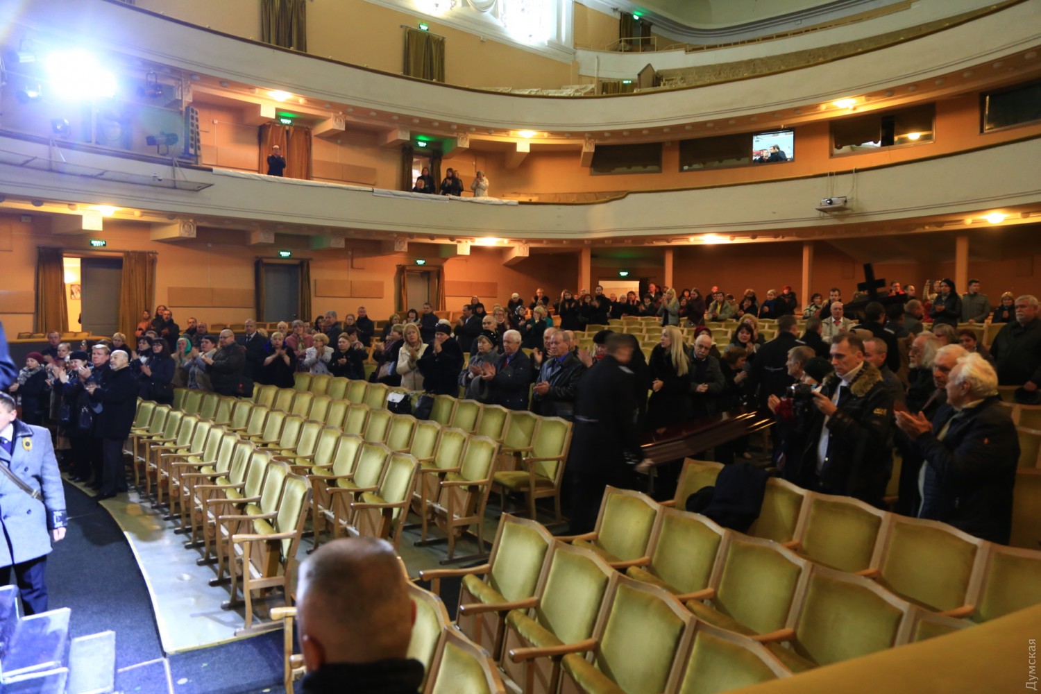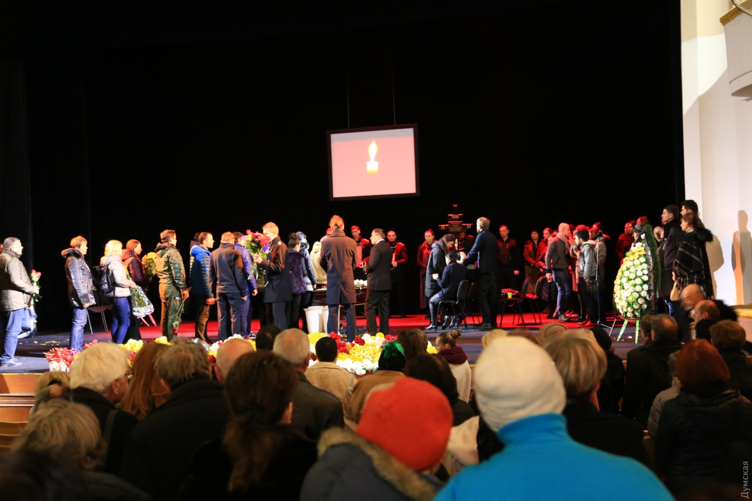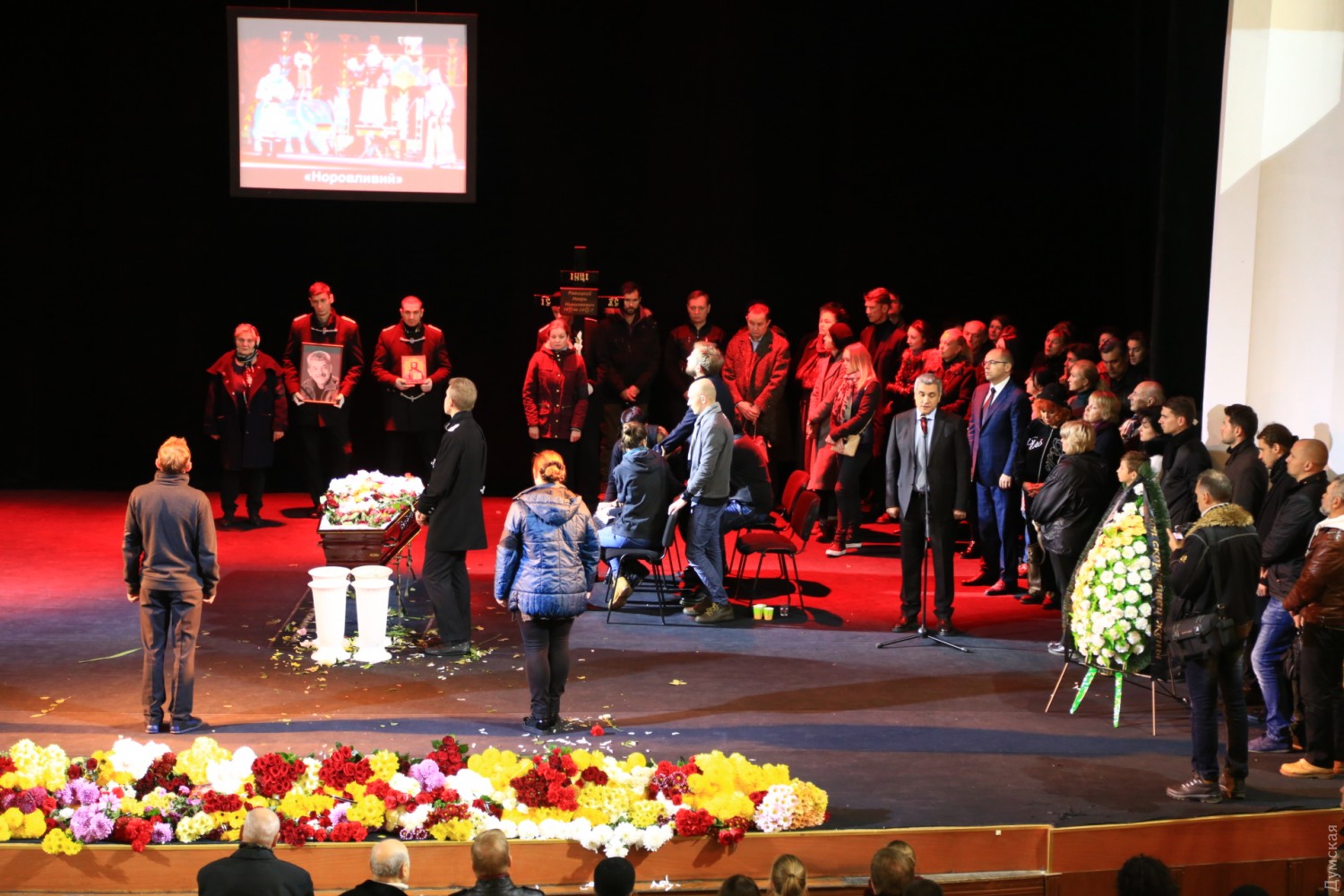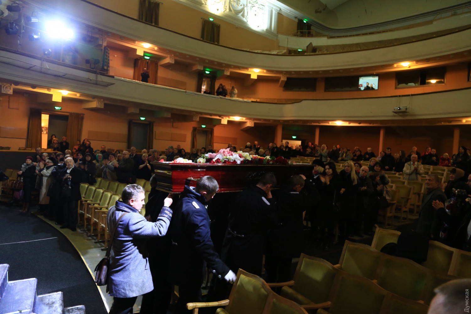 Сегодня днем театральная общественность Одессы прощалась с художественным руководителем Украинского театра Игорем Николаевичем Равицким, который скончался 29 октября на 71-м году жизни. Как передает корреспондент «Думской», гроб с телом народного артиста установили на сцене театра. Было много цветов и слов благодарности. По традиции театрального деятеля проводили в последний путь долгой овацией. Фото — Сергей Смоленцев СМЕРТЬ РОСІЙСЬКИМ ОКУПАНТАМ! Помітили помилку? Виділяйте слова з помилкою та натискайте control-enter |